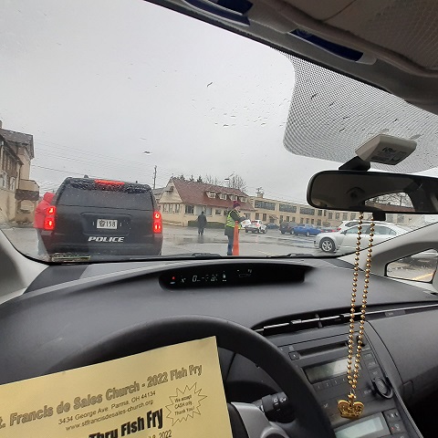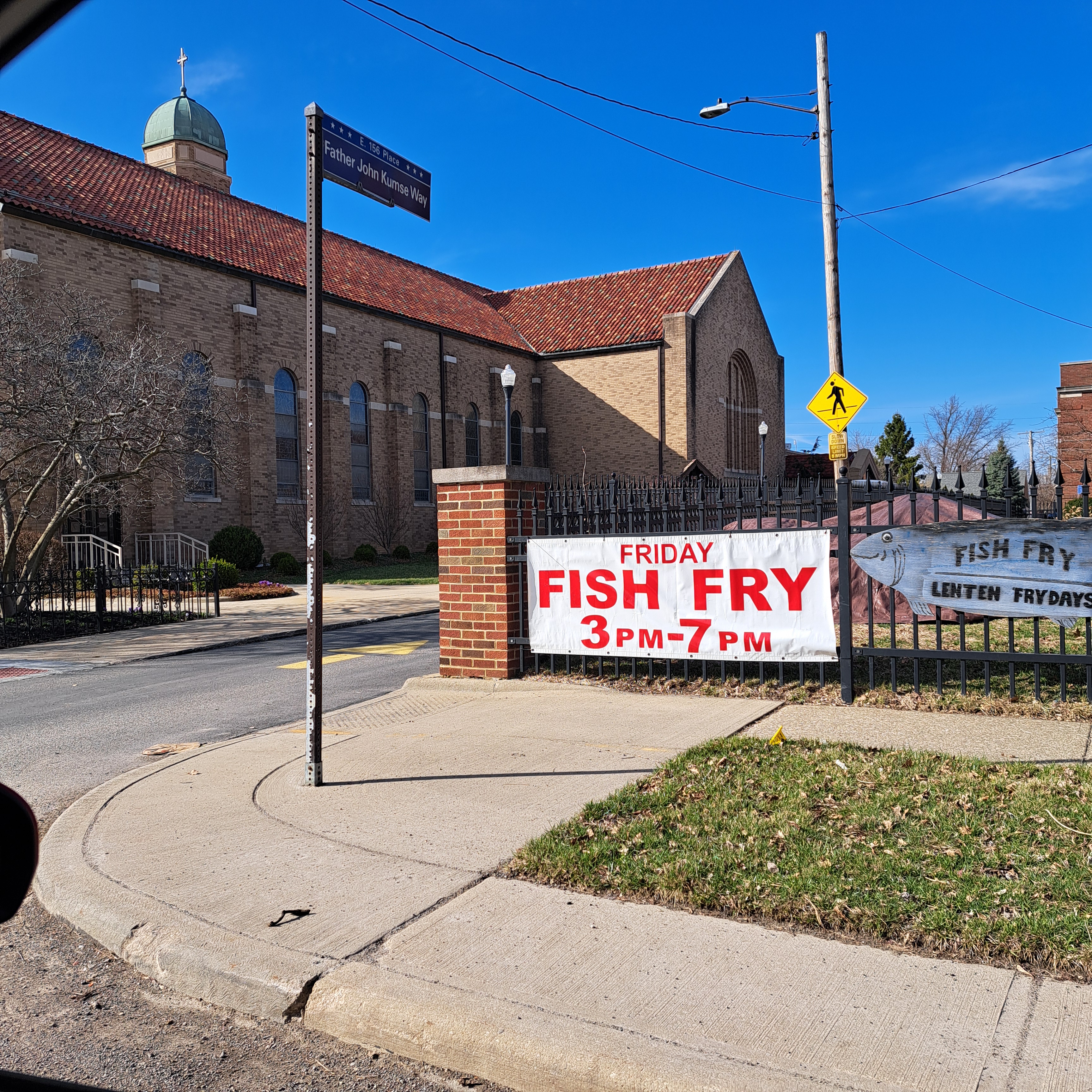 I was tempted to head straight to St. Mary of the Assumption after lunch because I got home at around 3:00 (the fish fry is from 3 to 7 PM on Fridays in Lent). I decided to do take out, because I was full from lunch despite taking half of everything home as leftovers. I ended up stopping at home for a bit to check my email and headed out shortly after 4:00. I drove down Monticello and down North Taylor to Coit Road and E. 152nd Street, because I try to avoid as much of East Cleveland as possible and drive around it when I can. Too many traffic cameras and speed traps. One visit to the East Cleveland traffic court was enough for me.