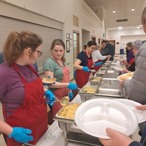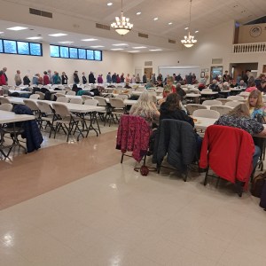 I headed to the Take Out sign thinking the line was for take out, but initially was in the line on the left wall that was for dine in (they serve the dinners on trays through a serving window – runners can help carry your tray if needed). I then headed towards the bar area (behind the crowd of people to the right of the big Take Out sign) to get in what I thought was the line, but it turns out it was just people standing around waiting for their take out meals. We were also obstructing the bar/beverage traffic, so that was fun. You actually need to order from the ladies sitting down at a table behind the dine-in condiments table (in the middle of the photo). Obviously you need to bring cash – no credit cards here. They need to do something about the logistics because it was a mess. I then was finally able to order my fried fish dinner and a side of mac n cheese to go. As we stood around waiting, one woman’s order was misplaced (but not really – it was just waylaid in the kitchen, but she quickly made a stink after her friend’s meal came up), and while they were trying to find it some other dinners were still coming out and put on a table to be bagged up. One woman who ordered after me got her meal while mine sat on the table waiting to be bagged up for me. There isn’t much of a consistent system. But hey, it’s a church fish fry with volunteers. After another minute or so I grabbed my bag and headed back to my car for a quick drive home.