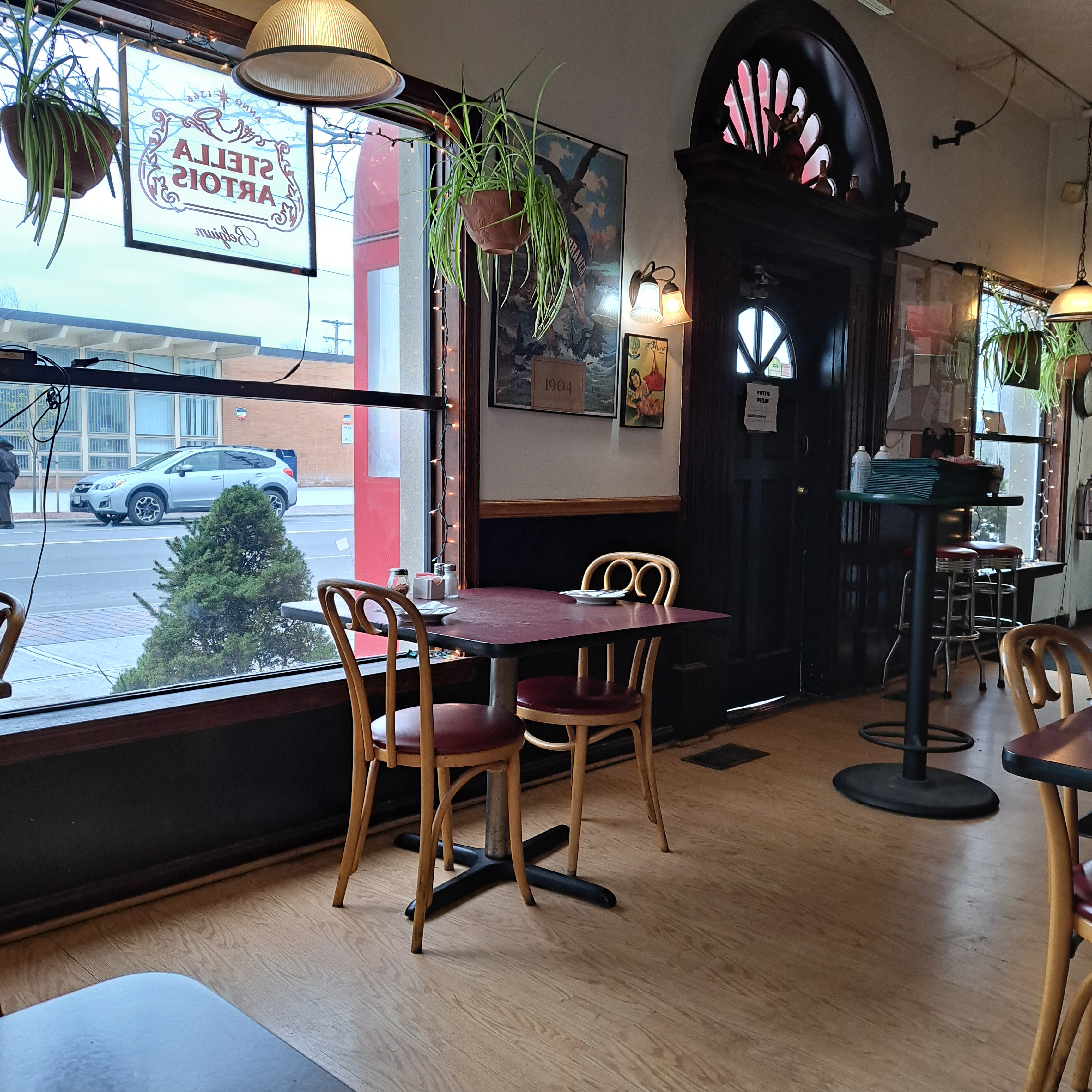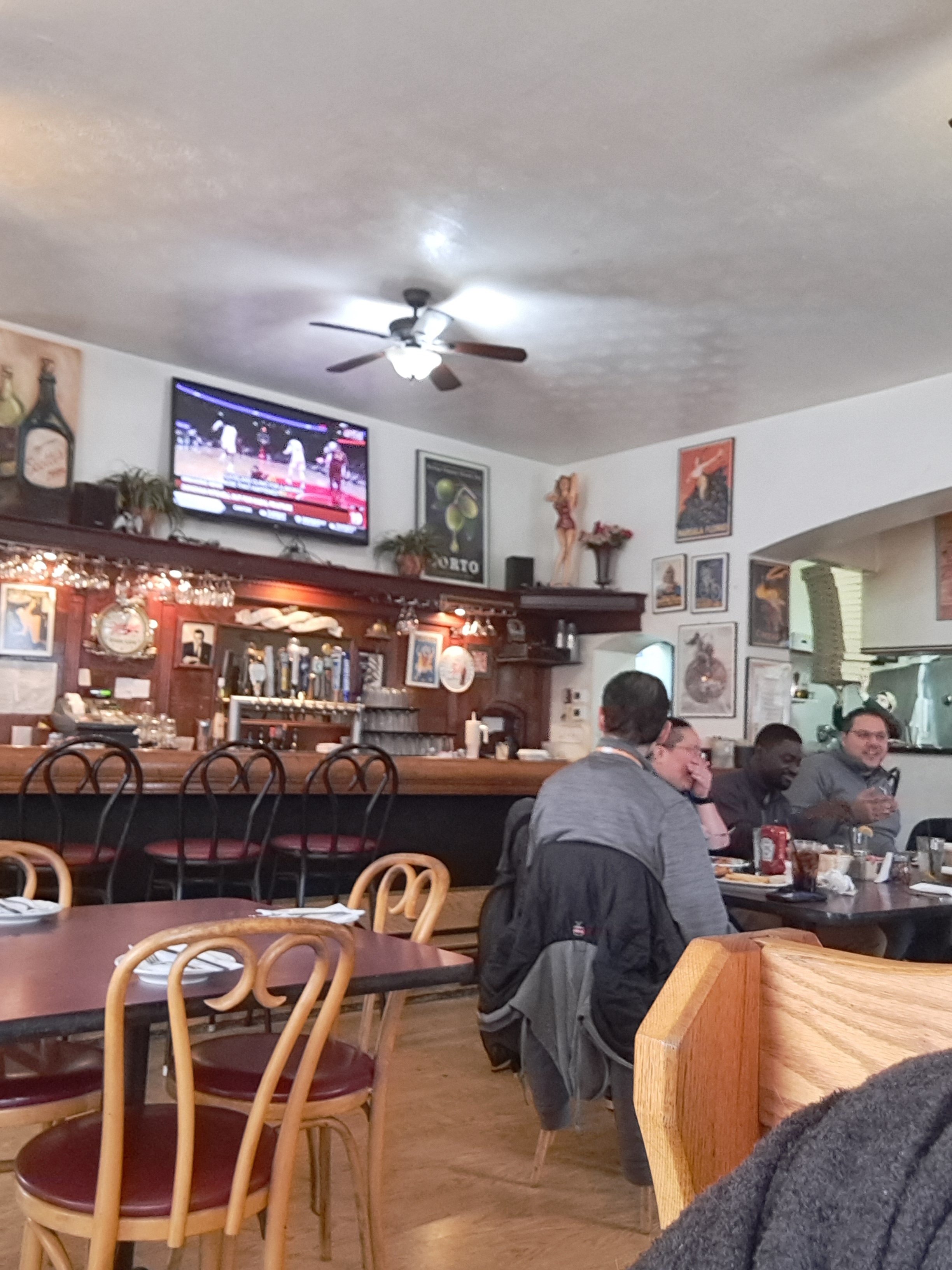 Our server was competent and very friendly (it can sometimes be hit or miss), and we got a couple of extra bialy as a thank you for being accommodating. The bialys are always a highlight. The chef changes the menu every week. In addition to several two soups, two salads, a pizza or flatbread and a Reuben sandwich. They also offer three prix fixe meals that include a bialy, a beverage, an entree and a dessert. This week they had Crispy Beer Battered Cod with herb rice pilaf, Basil Chicken over cous cous or Shepherd’s Pie (with ground beef and lamb).