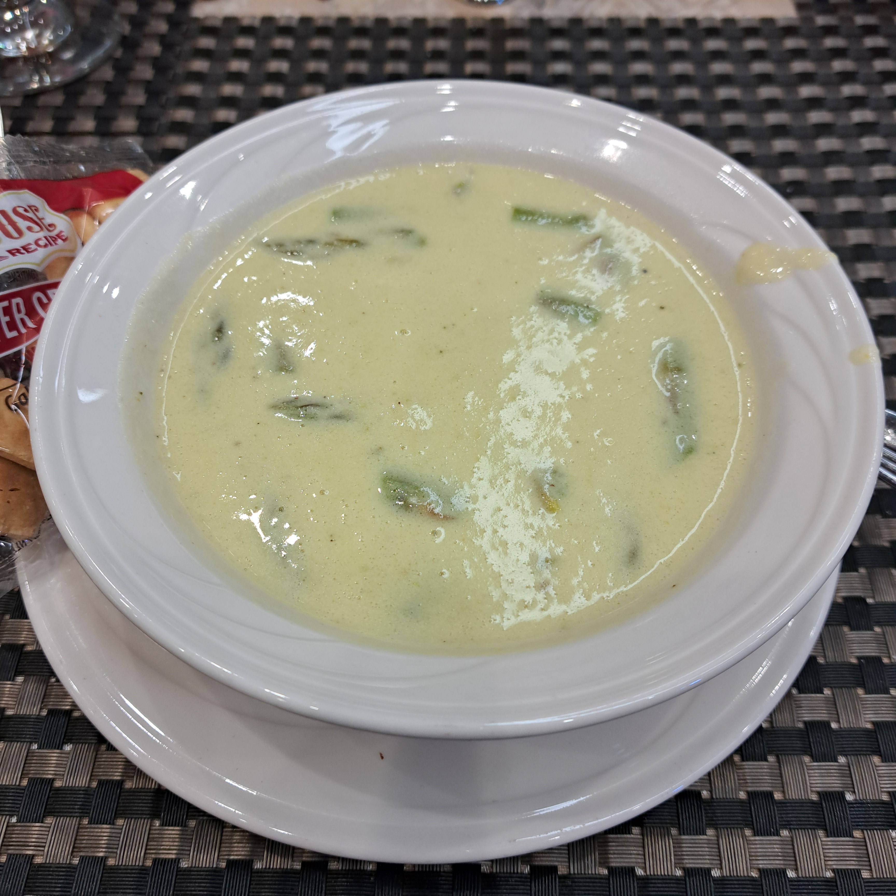 I had ordered the cream of asparagus soup to start. I love a good spring soup, and asparagus is a favorite. It had lots of fresh asparagus pieces in a delicious creamy soup. It was really nice soup, and I was tempted to get a quart of soup to take home. I have taken home their soup in the past and enjoyed it later.