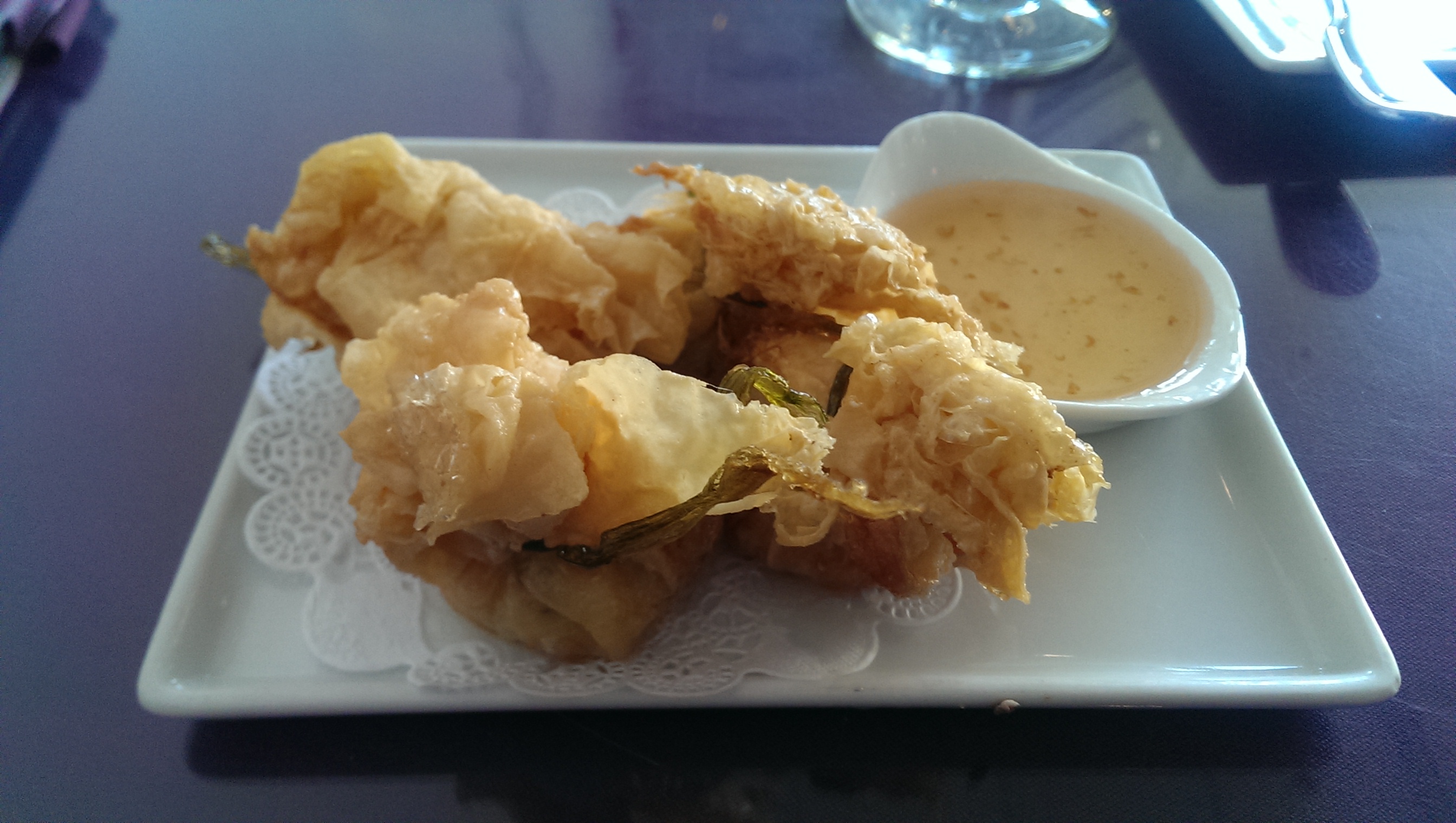 strings of chicken, so I could tell it was homemade. It was very good, although the rice had broken down a bit since it was later in the day after the lunch rush. My only complaint was that the server didn’t clear the soup bowl when she brought my dogs, but that is truly a minor complaint.
