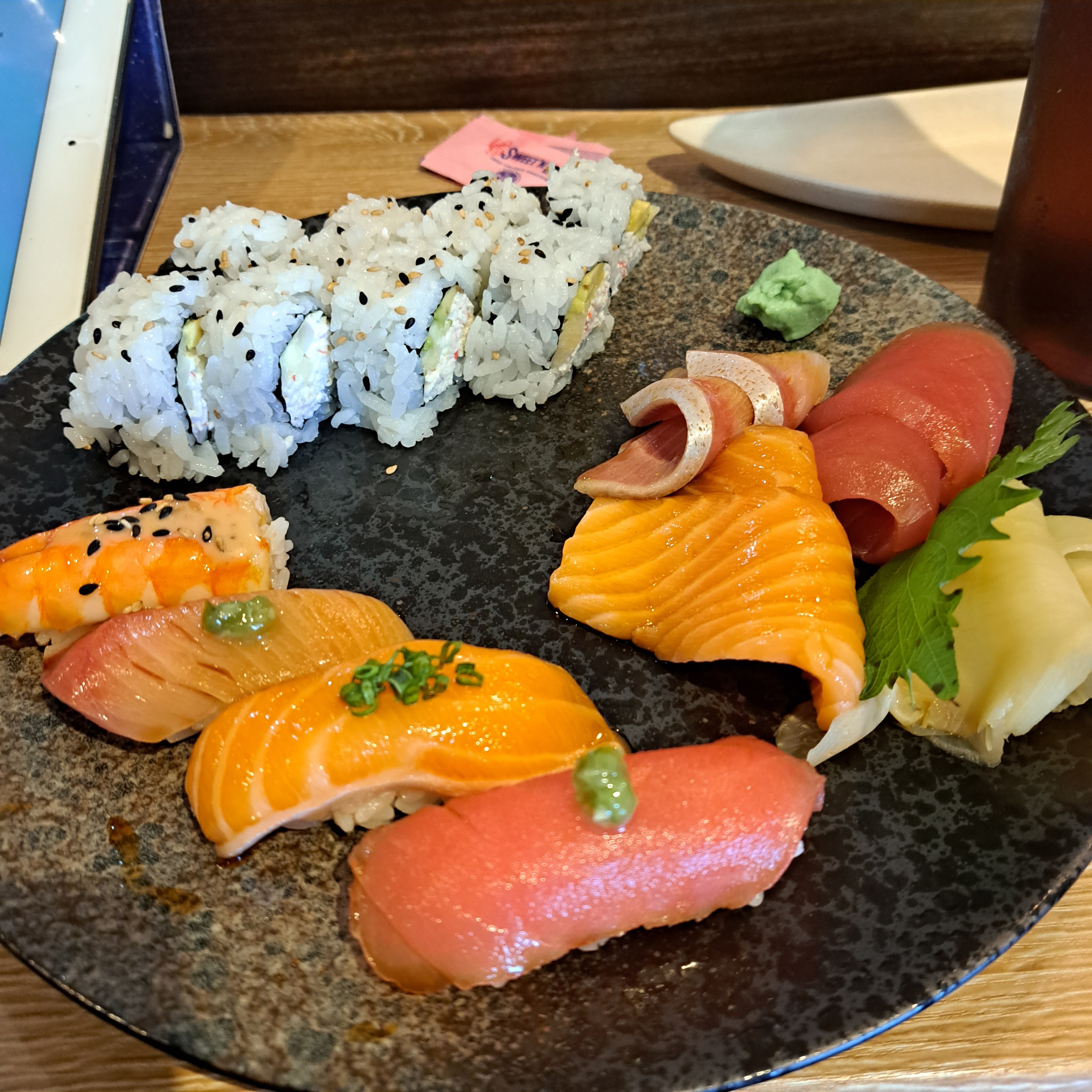 No fried fish for me this Friday! Despite my best intentions a fish fry was not in the cards for me. Work came in the way, and I had too much on my desk to be able to clear an hour or two for a fish fry. Luckily I had made plans with a friend for lunch, and we were meeting at Ice or Rice Cafe to introduce her to the place (she lived in Japan for many years, so she needed to try it). So I still had fish, but it was raw instead of fried.