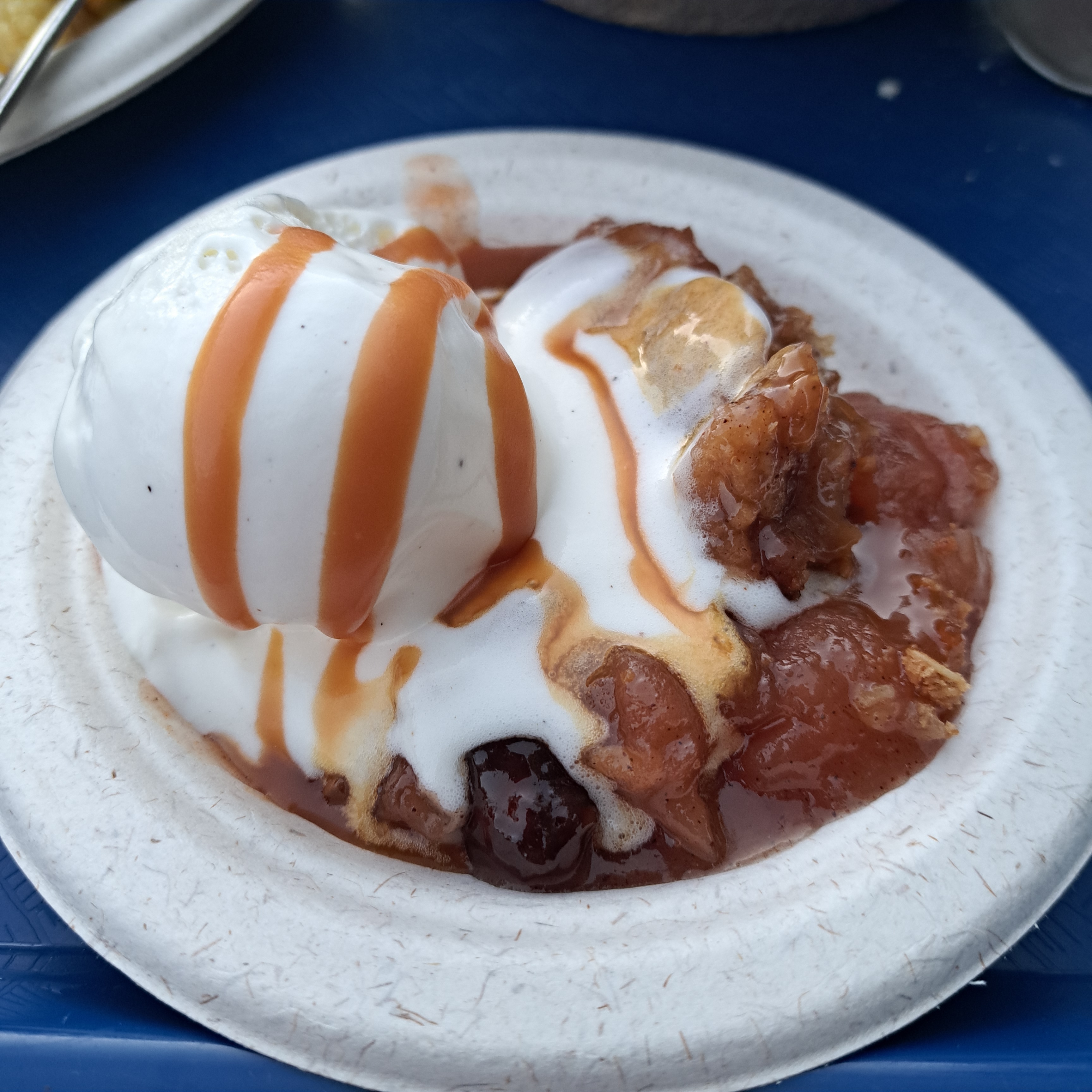 I usually get the steak bake at Gunselman’s, but my friends had bought chicken bakes because the steak bakes were sold out when they got their tickets. They start serving clam broth and clam chowder at 1 PM and serve the clambakes at 2 PM. I got there at 12:45 and joined my friend inside. I debated if I wanted a beer or a glass of wine, but ended up ordering a cocktail that intrigued me – a Chocolate Peanut Butter Old Fashioned, which features Bird Dog Peanut Butter Whiskey, orange bitters, chocolate bitters and simple syrup. I really loved it and might have to buy some peanut butter whiskey and chocolate bitters so I can make them at home. I would probably add a splash of half and half, but even without it was a delightfully inventive cocktail. I’m also intrigued by the Autumn Aperol Spritz that features sparkling wine, Aperol and apple cider.