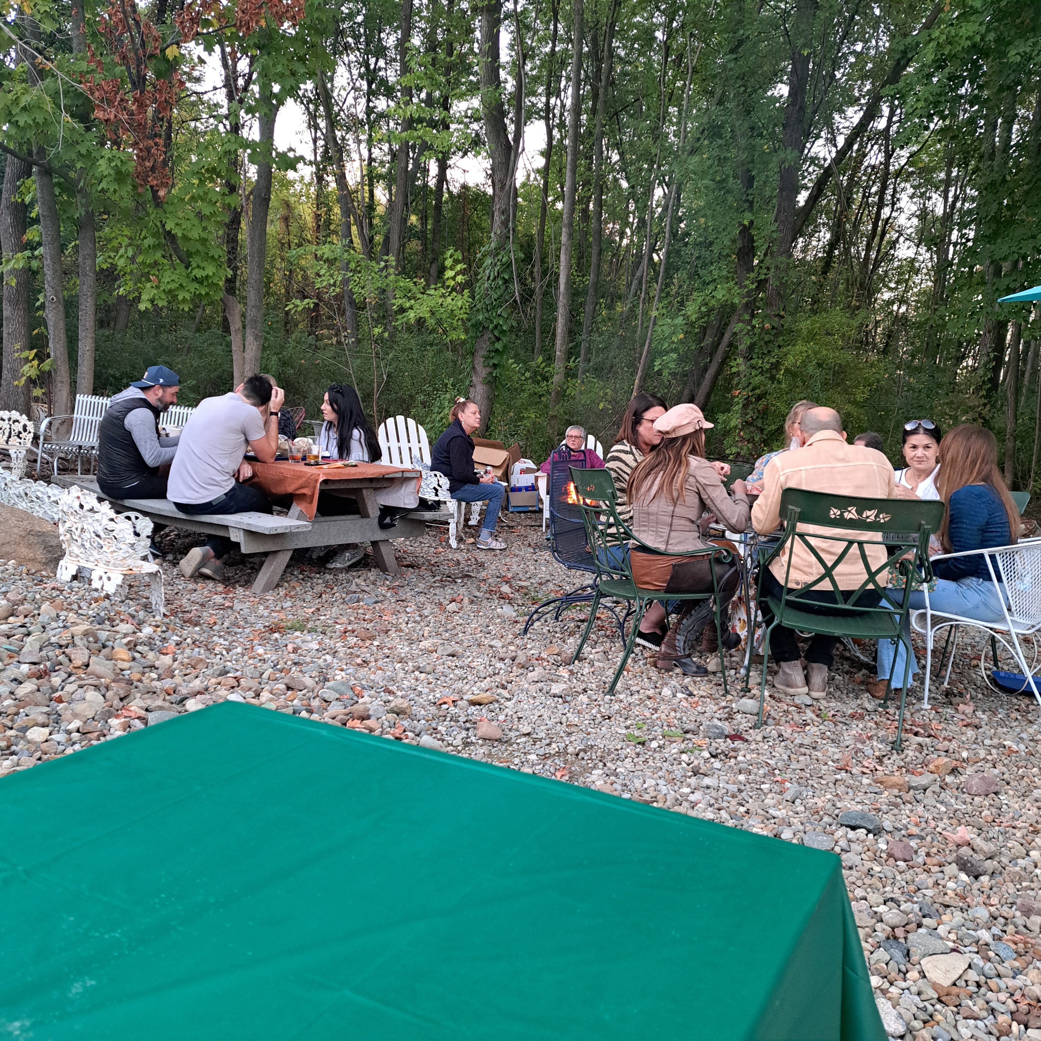 One of my friends from high school (Dreadlock Dave) posted about a clambake he was going to perform at (he’s a musician), so I bought a ticket on Eventbrite thinking I would know some people there. Unfortunately we are from the West Side, and the clambake was decidedly on the East Side – near the Ravenna exit off 422, so I didn’t know anyone but him (and met his girlfriend). I guess technically it is in Chagrin Falls, but it is close to the border with Ravenna. Reithoffer’s Art, Spirits and Entertainment is an eclectic bar and special events center on Ravenna Road. The clambake was held outside, and the weather was stunning. The event started at 4, but I tried to get there towards the tail end since I knew I would be staying to hear him perform at 8. Dave decided to perform inside since the temperature was going to drop when the sun went down. When I arrived I found a parking space in the spacious parking lot and headed towards the catering tent. I was looking forward to this, because Normandy Catering has a very good reputation.
