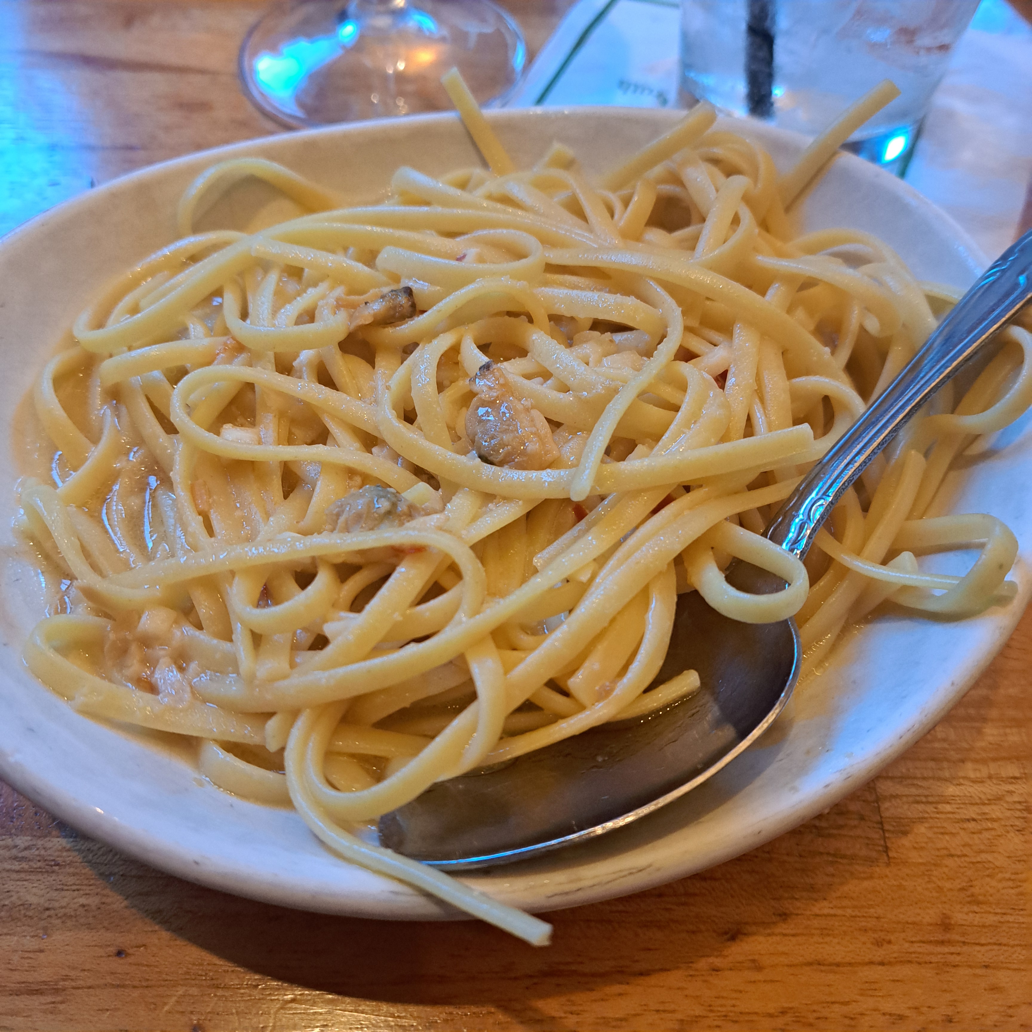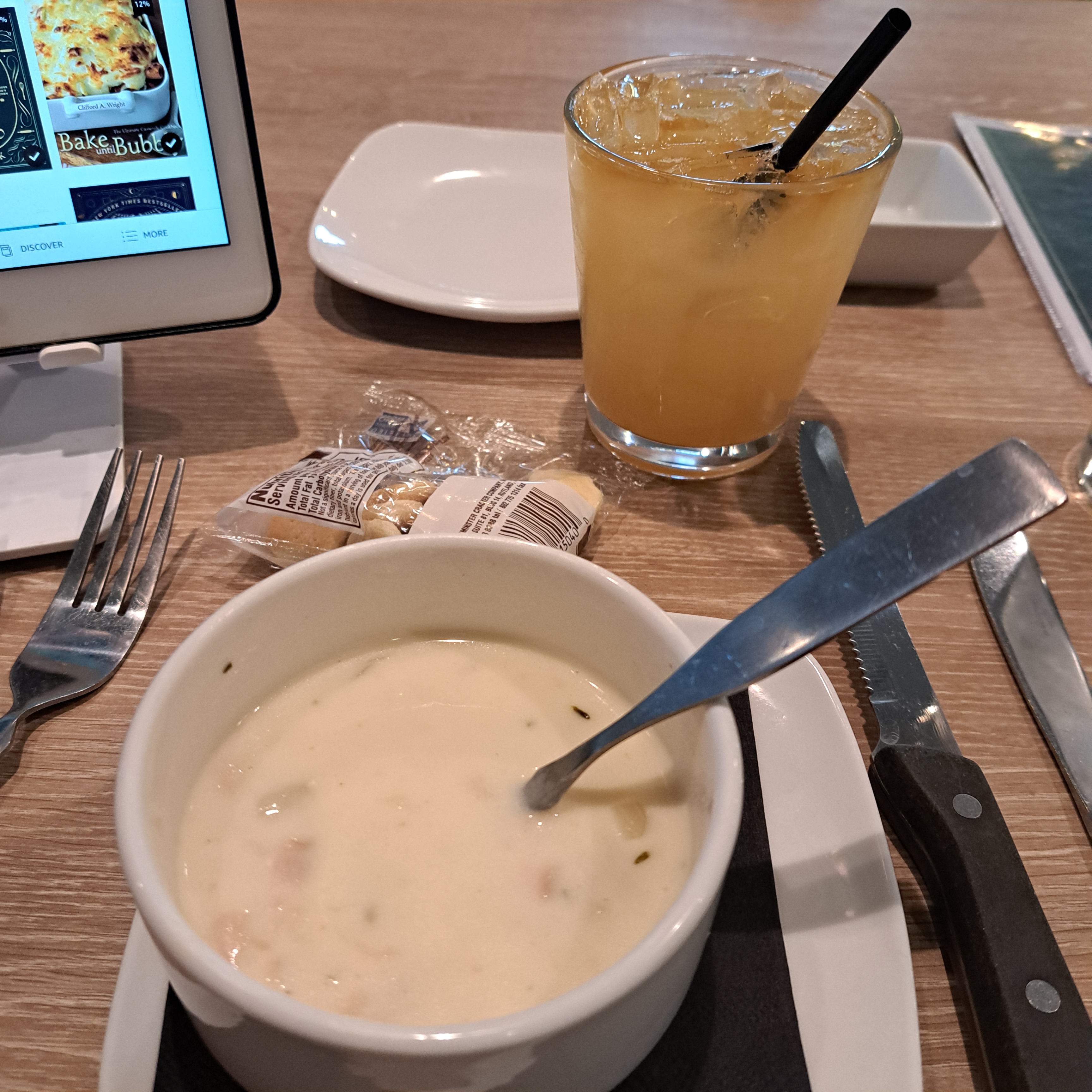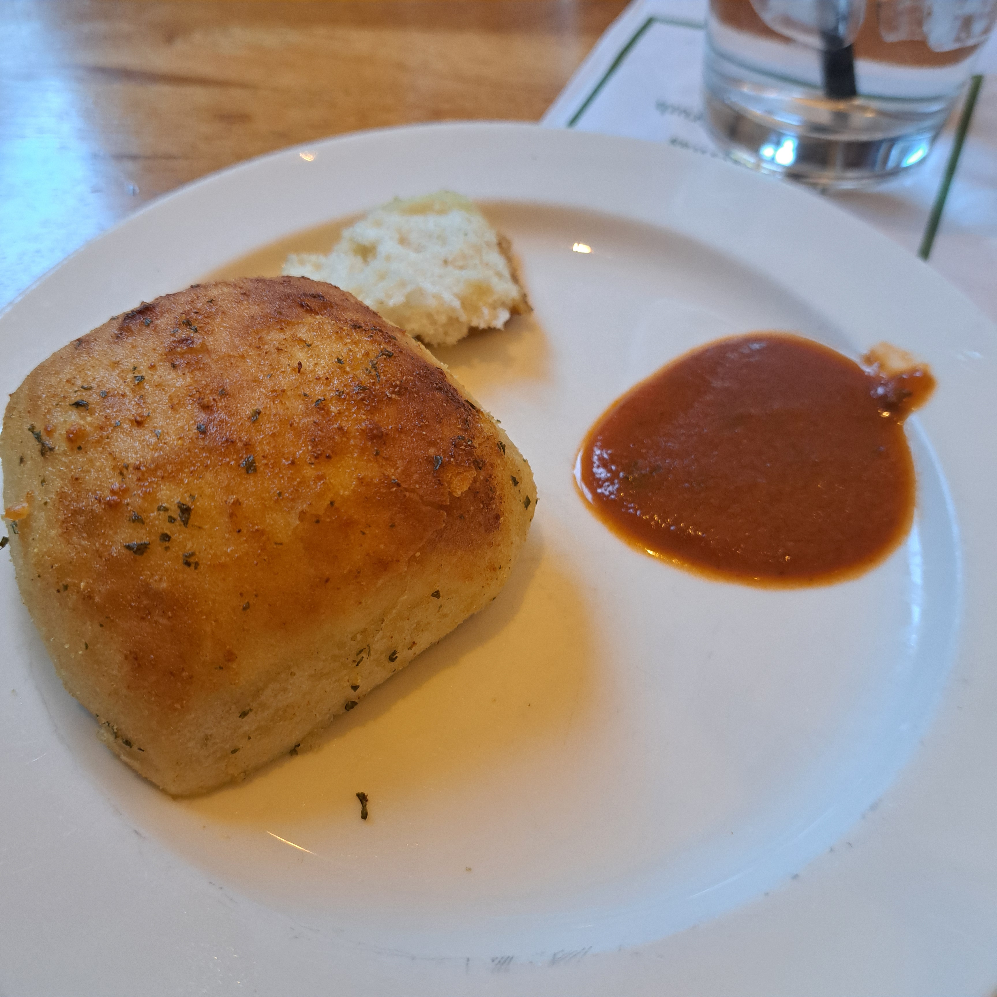 I can recommend the soups. First of all, the Italian wedding soup is a great wedding soup, and the New England clam chowder was a special that I enjoyed during my most recent visit. The clam chowder was refreshing and had a lot of clams and potato chunks. The wood-fired bread stick that comes with the soup was a nice touch.