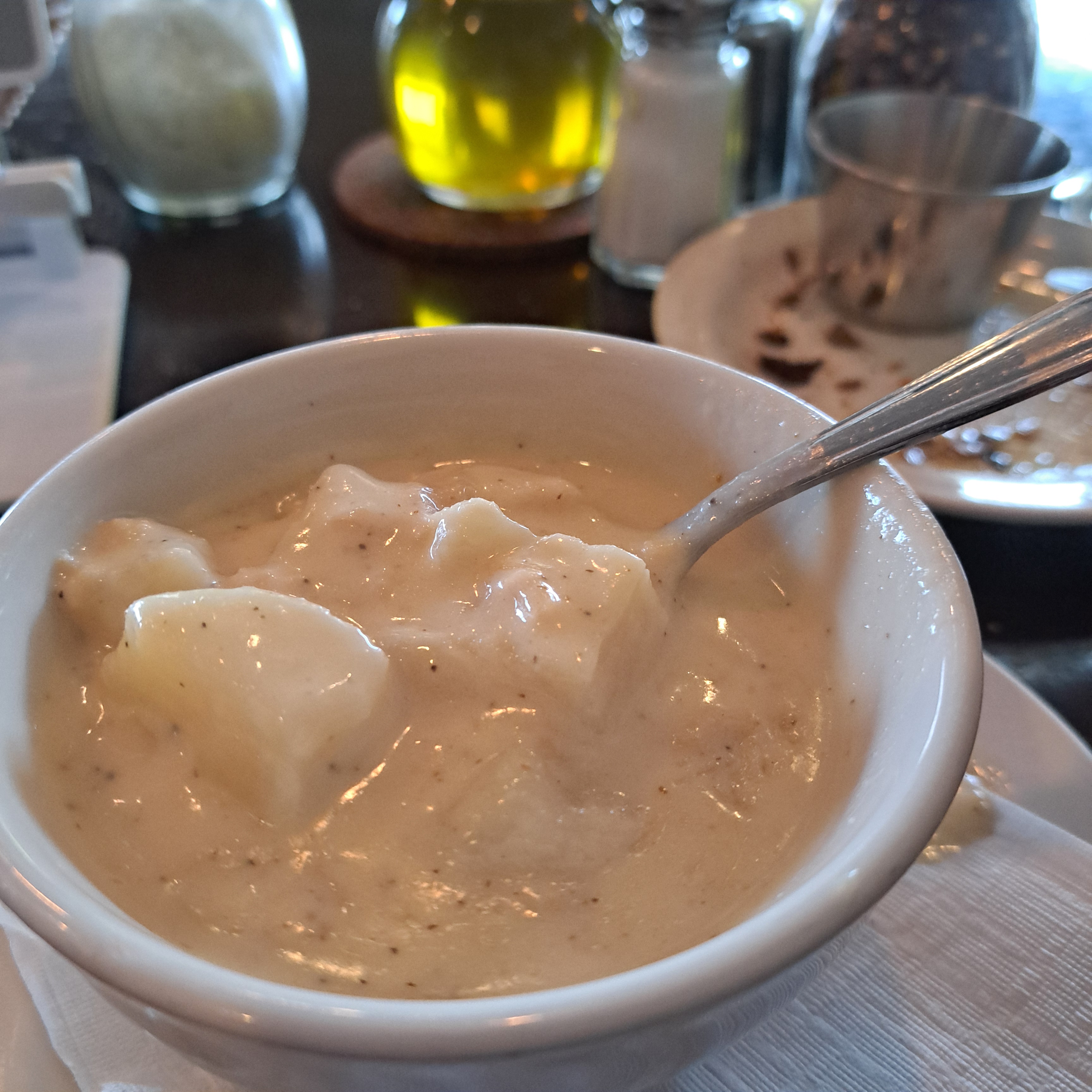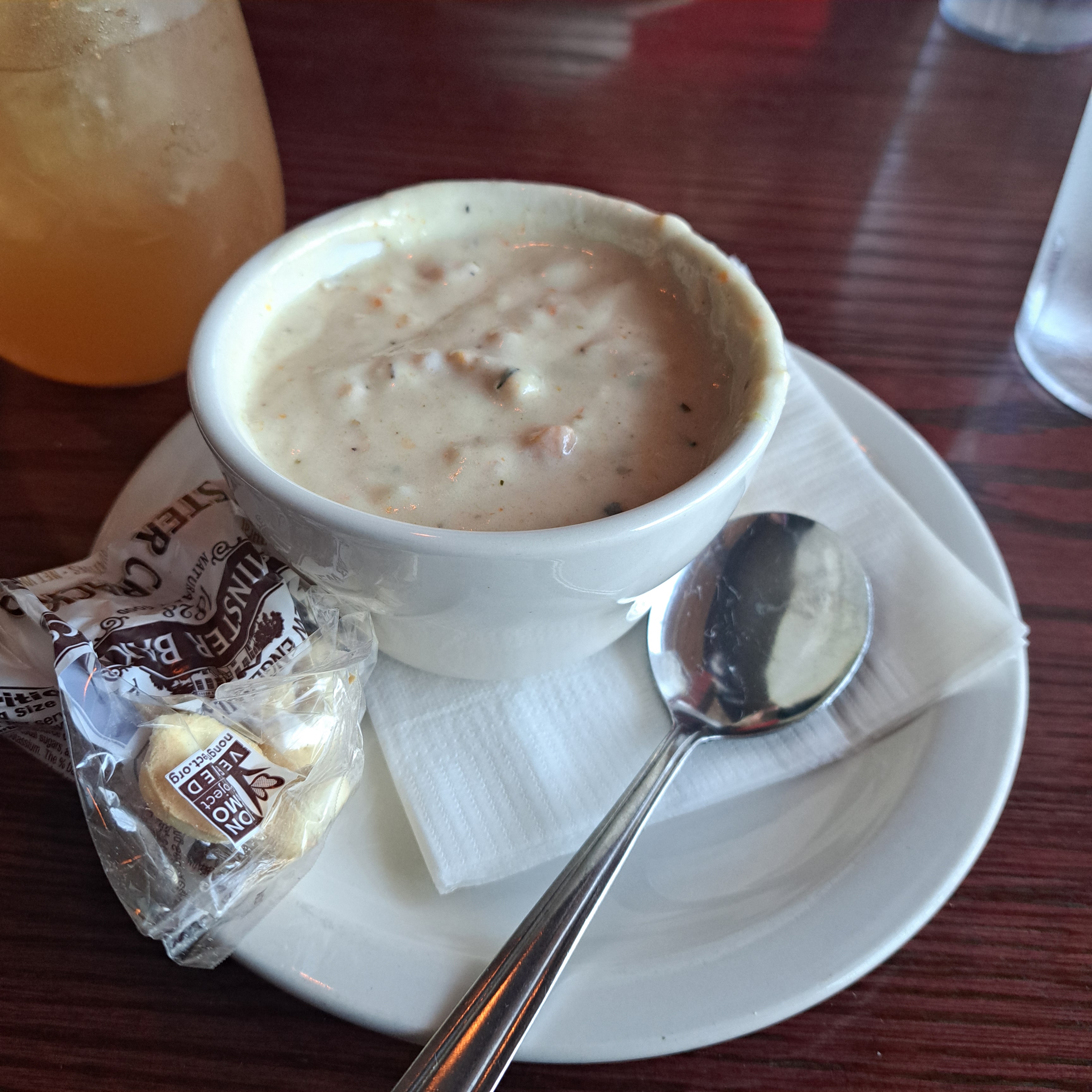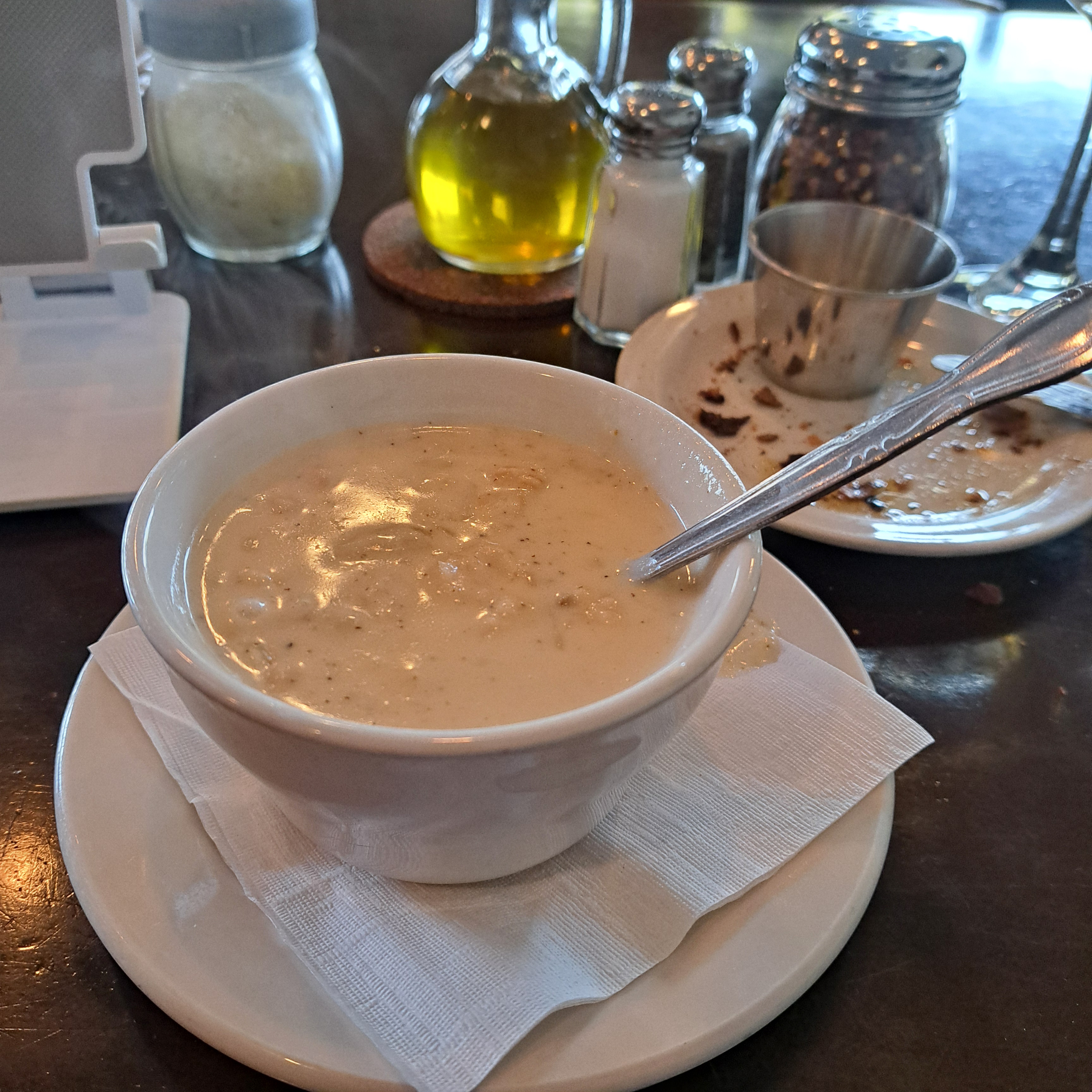 The clam chowder is great – with lots of big chunks of potato, clams, celery, etc. If it’s on the menu definitely get it. I ordered a bowl along with my Patty Melt. The serving was huge. The chowder was creamy and not at all lumpy. I enjoyed every bite.