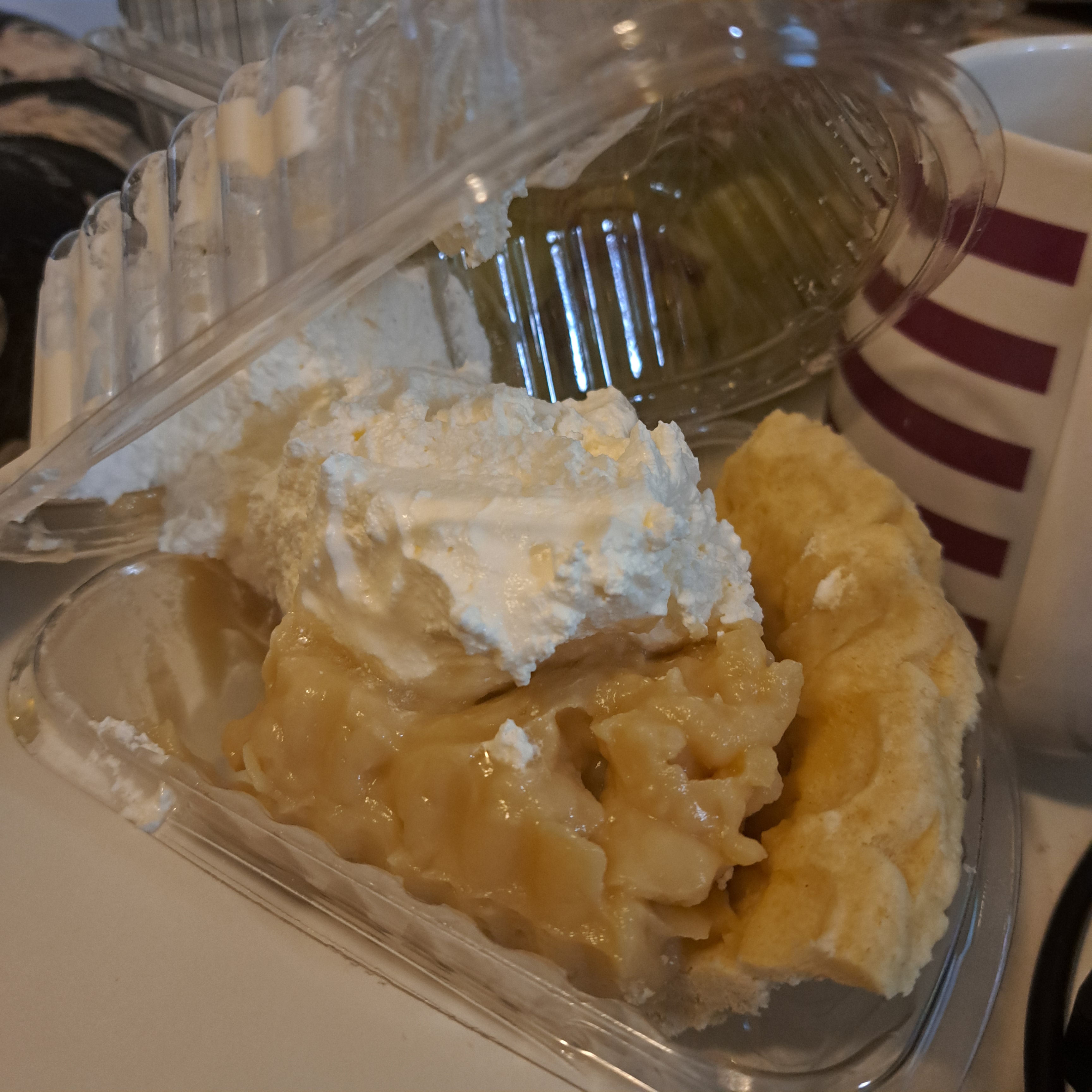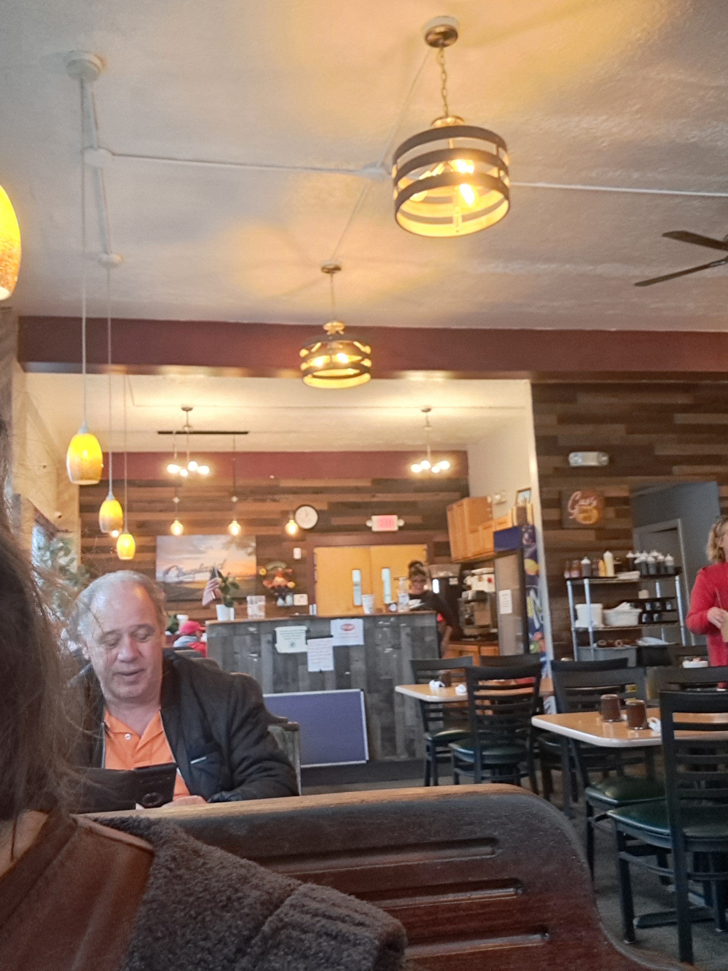 I usually only fill up one dinner plate with my choices, but others take several trips. The buffet offerings do vary by the day, but there is usually always baked or broasted chicken, mashed potatoes, dressing and a nice vegetable on offer. Not to mention a dessert or two like a pudding. Last week one patron was sad that only the “blue jell-o” was left. But you can always order a piece of their excellent pies if you have room (or get a piece to go to enjoy later at home). I always enjoy the broasted chicken and chicken or beef noodles. The mashed potatoes are hearty and tasty. Be sure to not take too much, because there are no to go containers for the buffet (well, technically there are, but they charge $7.99 per pound).