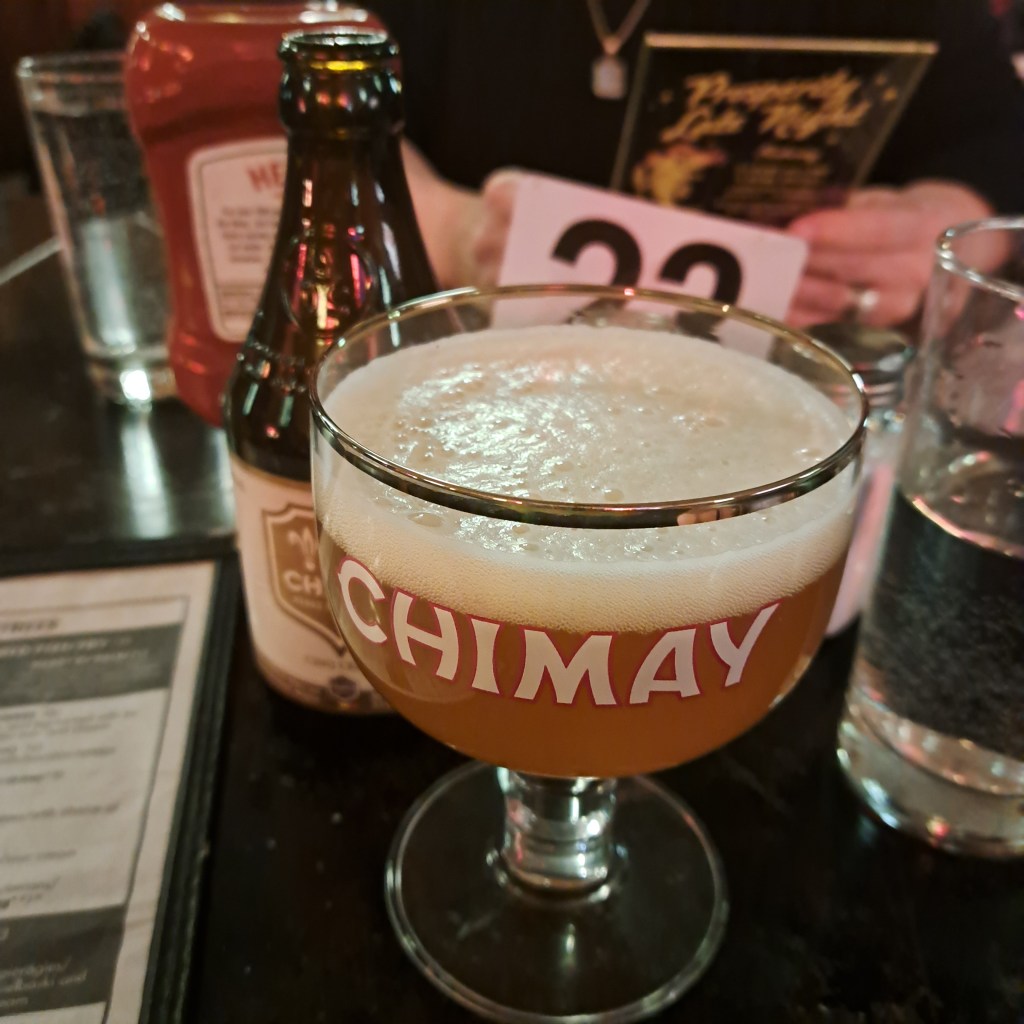 They have a great beer and cocktail menu. Unlike during my recent visit to The Friars’ Table (stay tuned), Prosperity serves their Belgian beer in a proper Belgian beer glass! European have specific glasses for their specific beers. Belgian beer glasses are shaped like tulips, and the wide bowl and tapered mouth develop a thick head on the beer that captures each aromatic note. I was very pleased to get a Chimay glass for my Chimay beer.