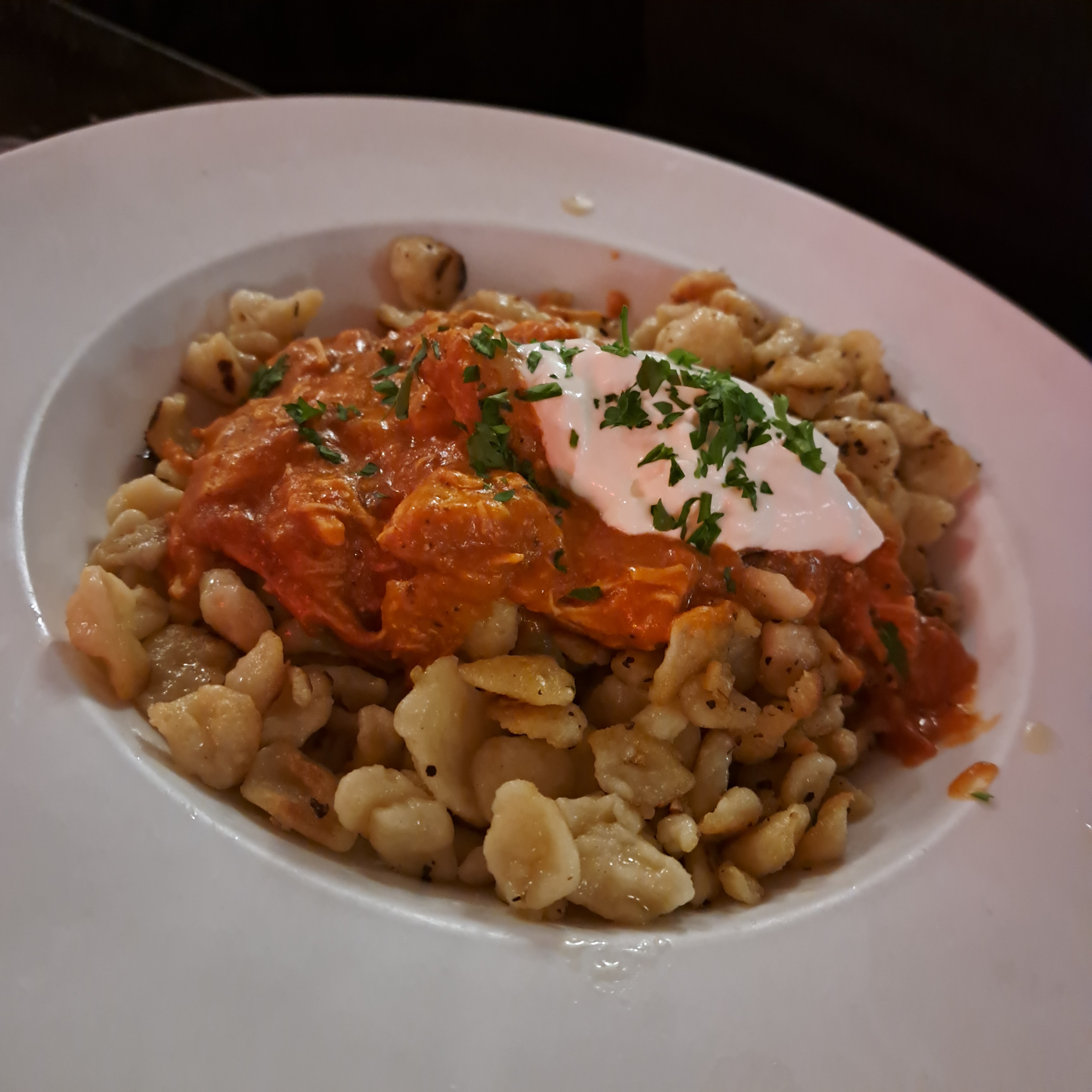 The schnitzel and spätzle were quite nice on another visit. They were supposed to come with a lemon basil sauce, but the waitress happily substituted brown gravy instead when my friends asked for the sauce on the side because it was extremely lemony on a previous visit. It was a lot of ofod for only $10 0 with two pork cutlets and lots of fresh made spätzle.