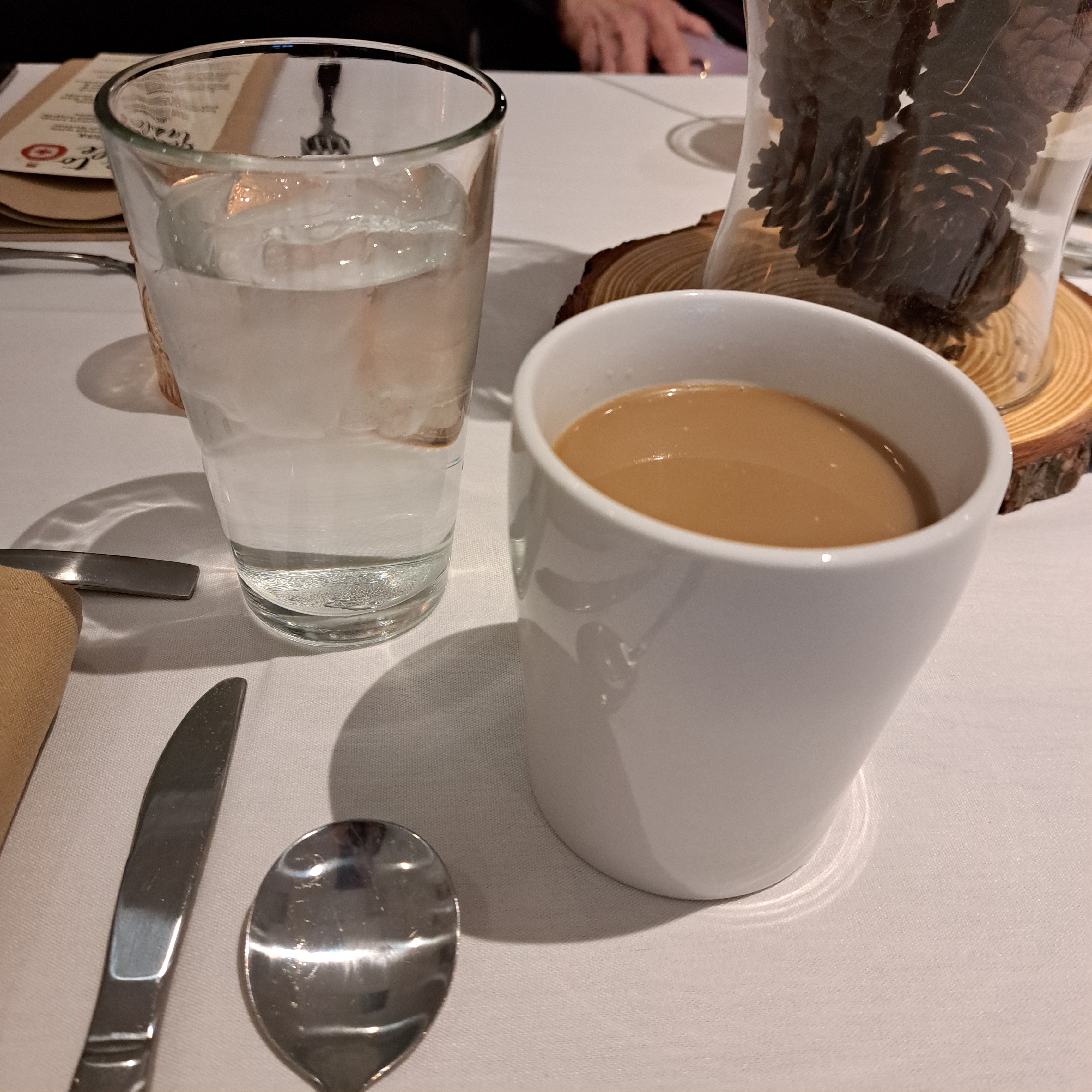 The wine is served in juice glasses. I have become a fan of Sangiovese wine, so started off by ordering a glass of Sangiovese. The waitress also brought me a glass of water. As Wikipedia explains, “Sangiovese’s high acidity and moderate alcohol makes it a very food-friendly wine when it comes to food and wine pairings. One of the classic pairings in Italian cuisine is tomato-based pasta and pizza sauces with a Sangiovese-based Chianti. Varietal Sangiovese or those with a smaller proportion of the powerful, full-bodied Cabernet blended in, can accentuate the flavours of relatively bland dishes like meatloaf and roast chicken. Herb seasoning such as basil, thyme and sage play off the herbal notes of the grapes.” If you haven’t tried it you might want to give it a try.