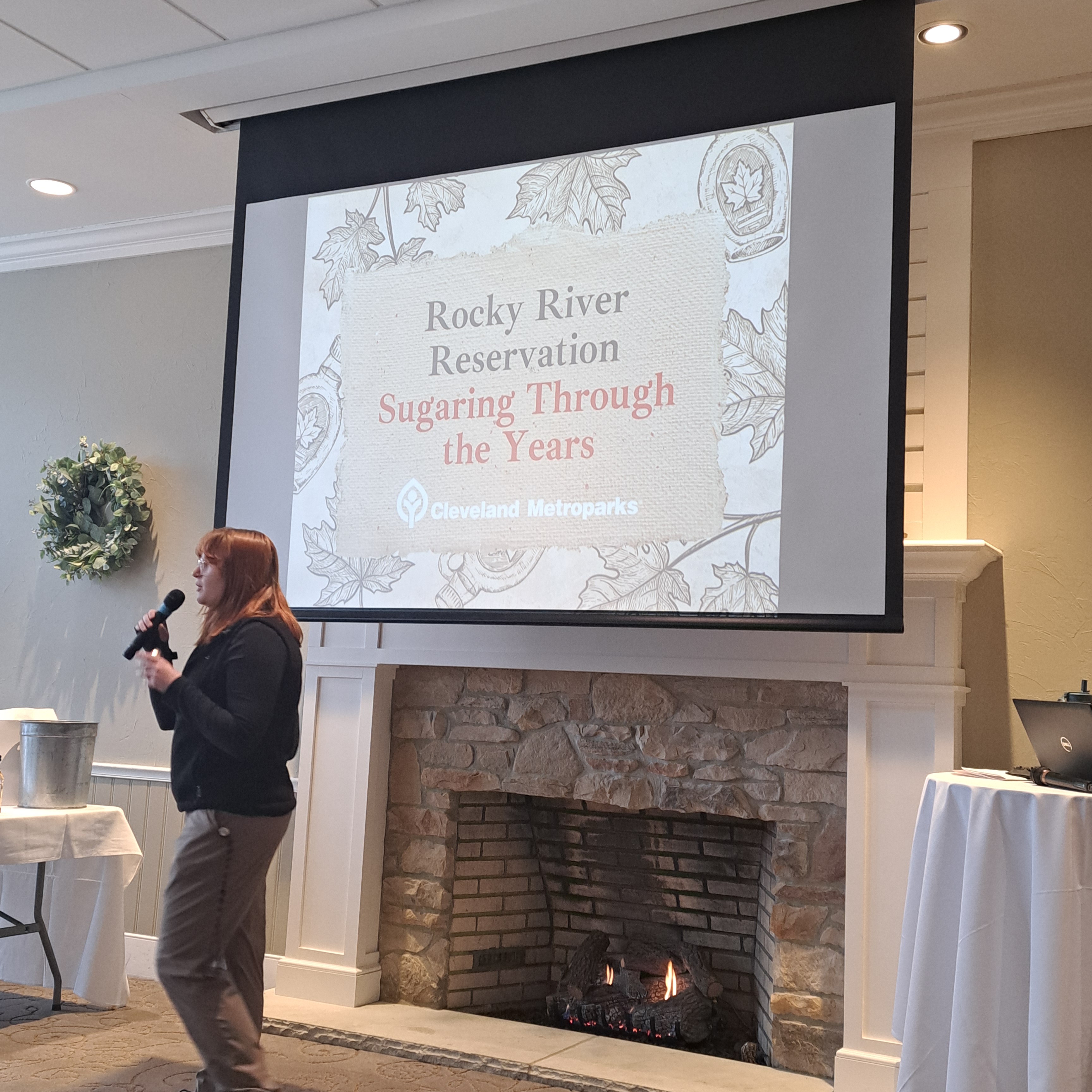 One of my tablemates had to leave to go see & Juliet at the Playhouse, which is fantastic and I was so happy that she got to see it (and it turns out about four or five of my friends were also at that show yesterday from the posts of Facebook), but she was able to enjoy the pain perdu and the crème brulee before she had to leave early to make it on time. I gave her fiancé my business card because I enjoyed talking to them so much. The Maple Crème Brulee with berry sauce and whipped cream was a delightful finish to an excellent meal. We then enjoyed a presentation on the history of maple syruping and maple syruping in the Metroparks, complete with props like collection bags and buckets, filters and a yoke that they wore to carry buckets of sap (an lots of photos of kids wearing the yoke). I would not have been surprised to see me among the photos of kids learning about maple syrup, because my mother took my sister and I to many educational events at the Metroparks when we were little and I definitely remember maple syrup production being one of them. We are so lucky to have the Metroparks for all of the educational as well as recreational activities!