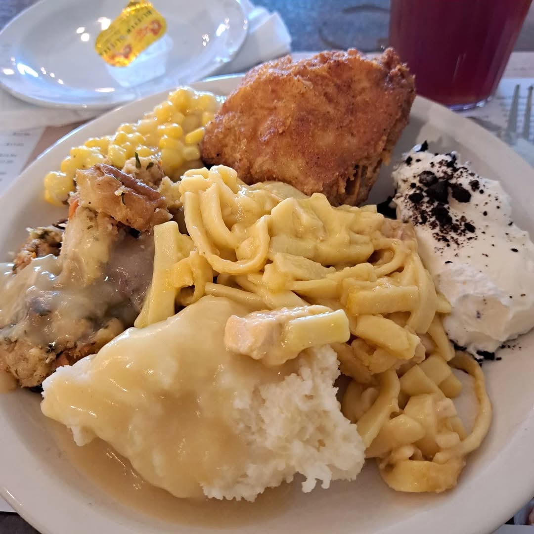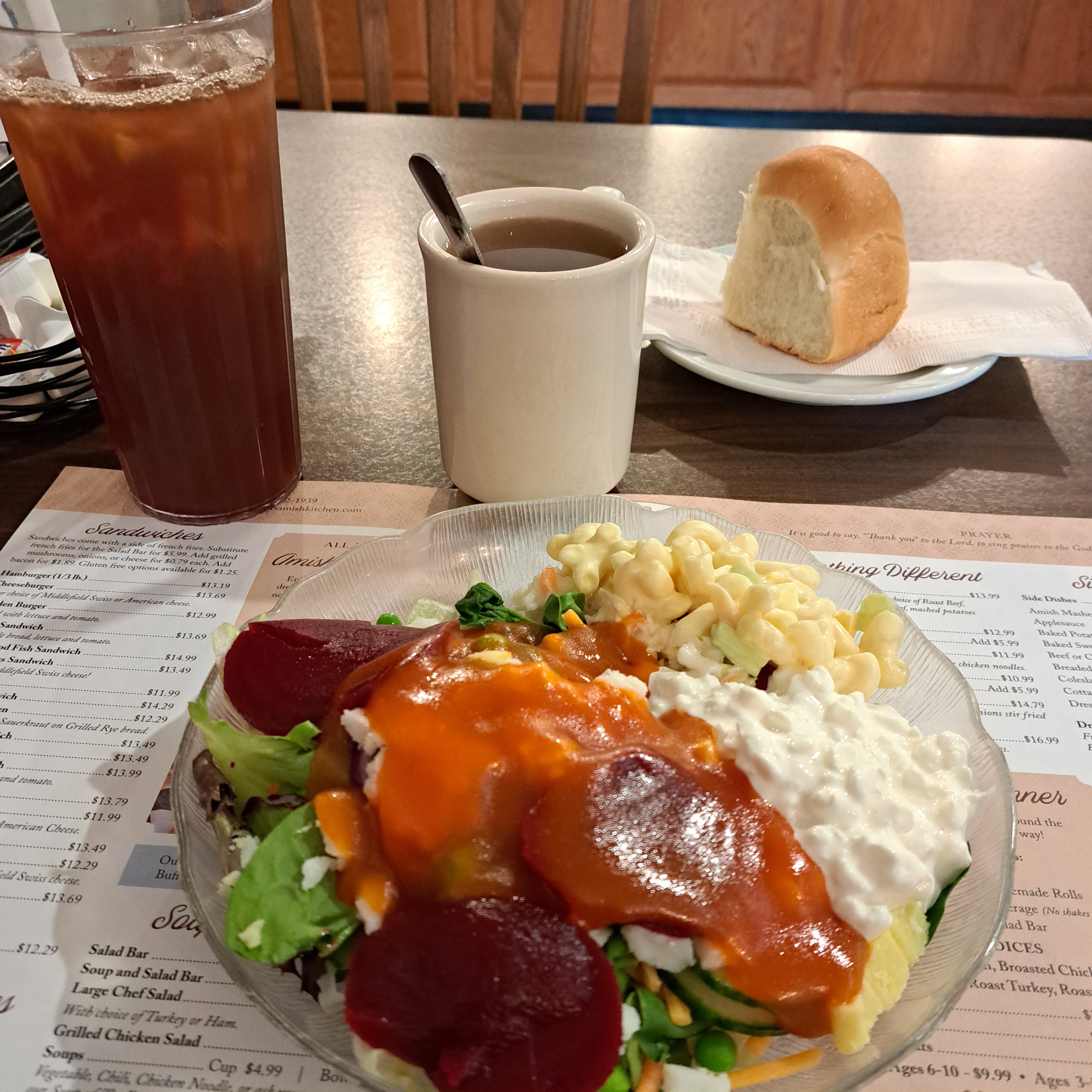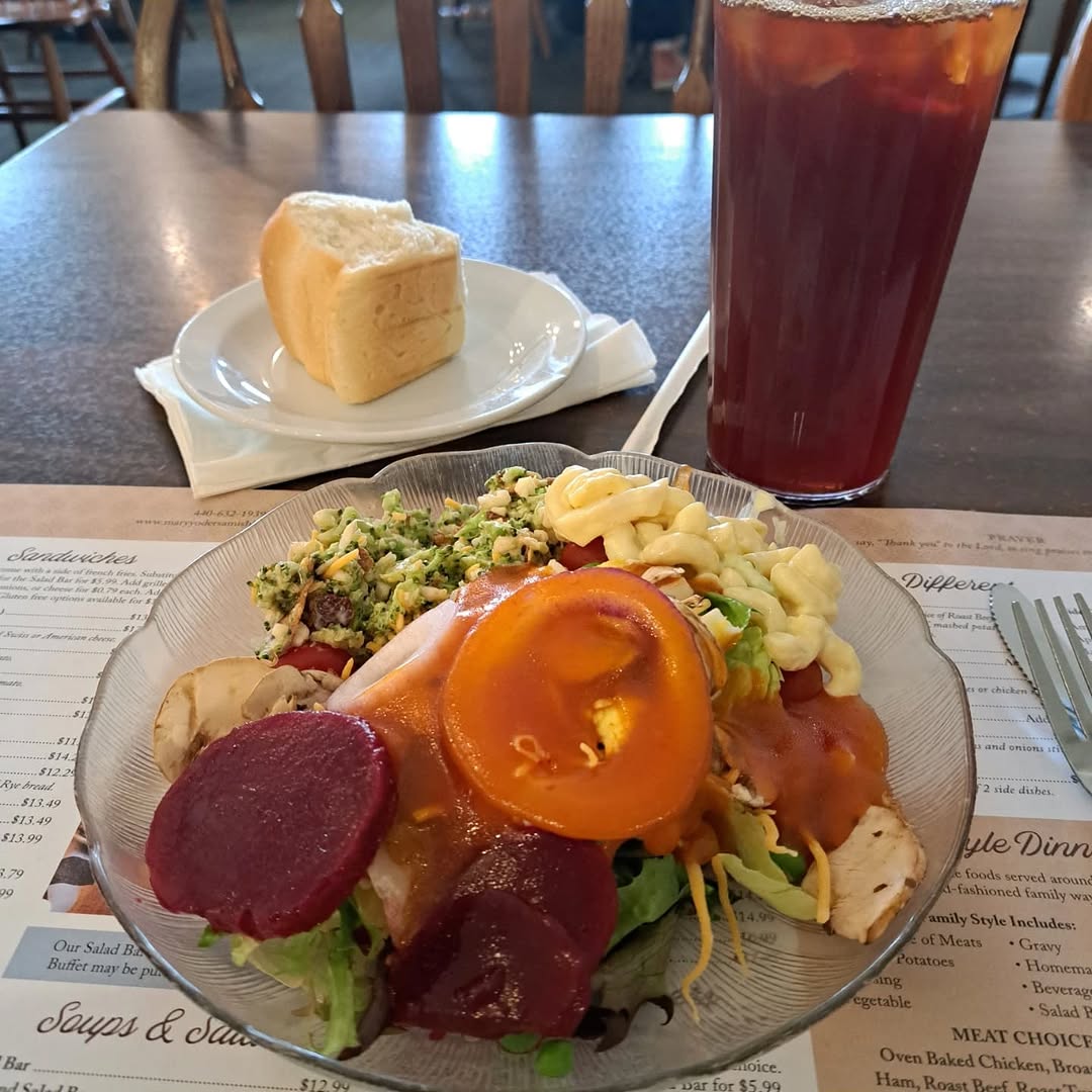 Mary Yoder’s Amish Kitchen opened in 1987 and is owned by the Miller family. Located in Middlefield, which is apparently in the center of the fourth largest Amish community in the world, Mary Yoder’s features a full-service restaurant serving breakfast, lunch, and dinner; a bakery; a private banquet room; and a gift shop. It’s not necessarily Cleveland, but Cleveland-adjacent and close enough to be a fun road trip. In fact, I took a spontaneous road trip out there for the dinner buffet in July. I drove out there a lot when I lived in Solon. It’s about an hour’s drive from Cleveland Heights either down South Woodland or on 422 to 700 (scenic drive over LaDue Reservoir and down some side roads past Amish homes and farms). I also love driving there in the fall to enjoy the changing leaves (I recommend the hot apple cider in the fall – see photo below). It’s definitely a tourist location and a tourist restaurant. That being said, you will see locals dining here as well as the occasional Amish or Mennonites dining here (but to be fair I saw a table of them at Cowboy Food and Drink in Bainbridge last month).