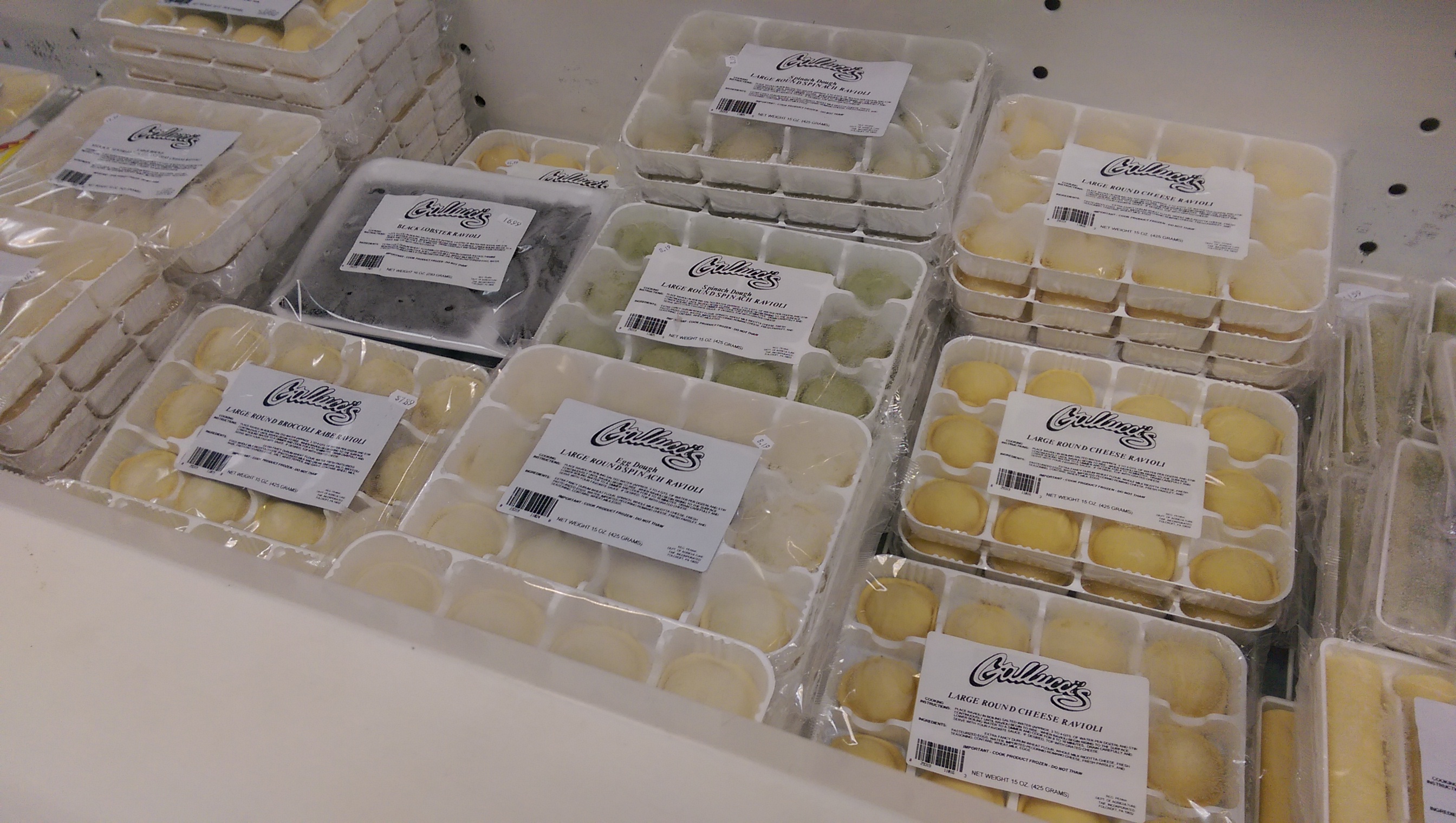 butter, all the fixings for homemade pizza including dough, sauce, crumbled sausage, pepperoni slices and shredded and shredded cheese. The freezers hold all kinds of frozen Gallucci pastas and seafood that you won’t find anywhere else as well as frozen soup, frozen meatballs (for wedding soup and for pasta dinners), and homemade gelato. The grocery aisles are
