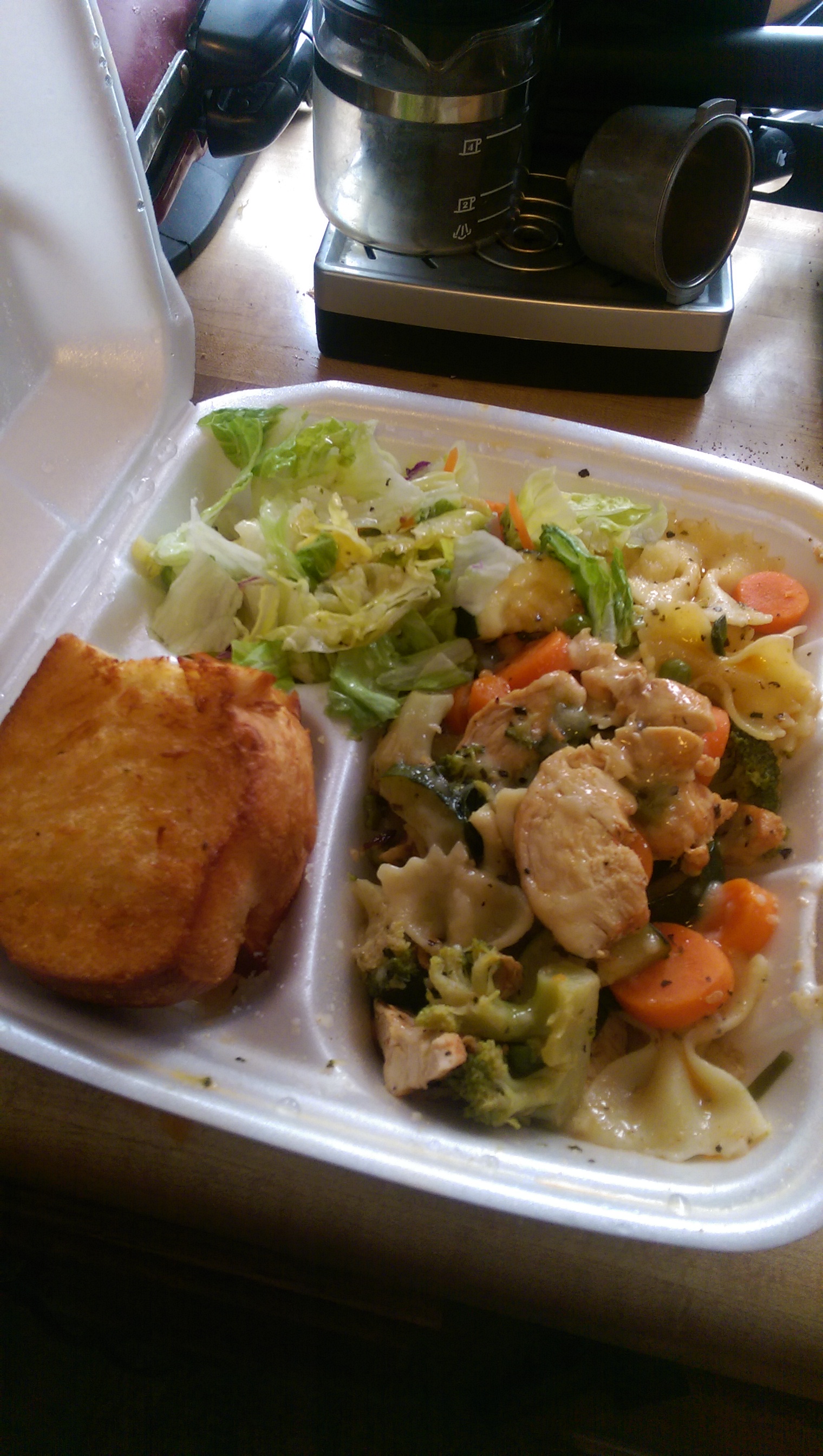 clearly not from a can, perfectly cooked red skin potatoes and lots and lots of delicious flavor. I managed to eat half of the steak, yams and ear of corn. I even loved the clam broth here, which I normally don’t bother with. Once stuffed, I got a box for the steak, yams and corn, grabbed my pumpkin pie (which was wrapped on a plastic plate I could just bring home with me) and headed home, looking forward to lunch or dinner the next day.