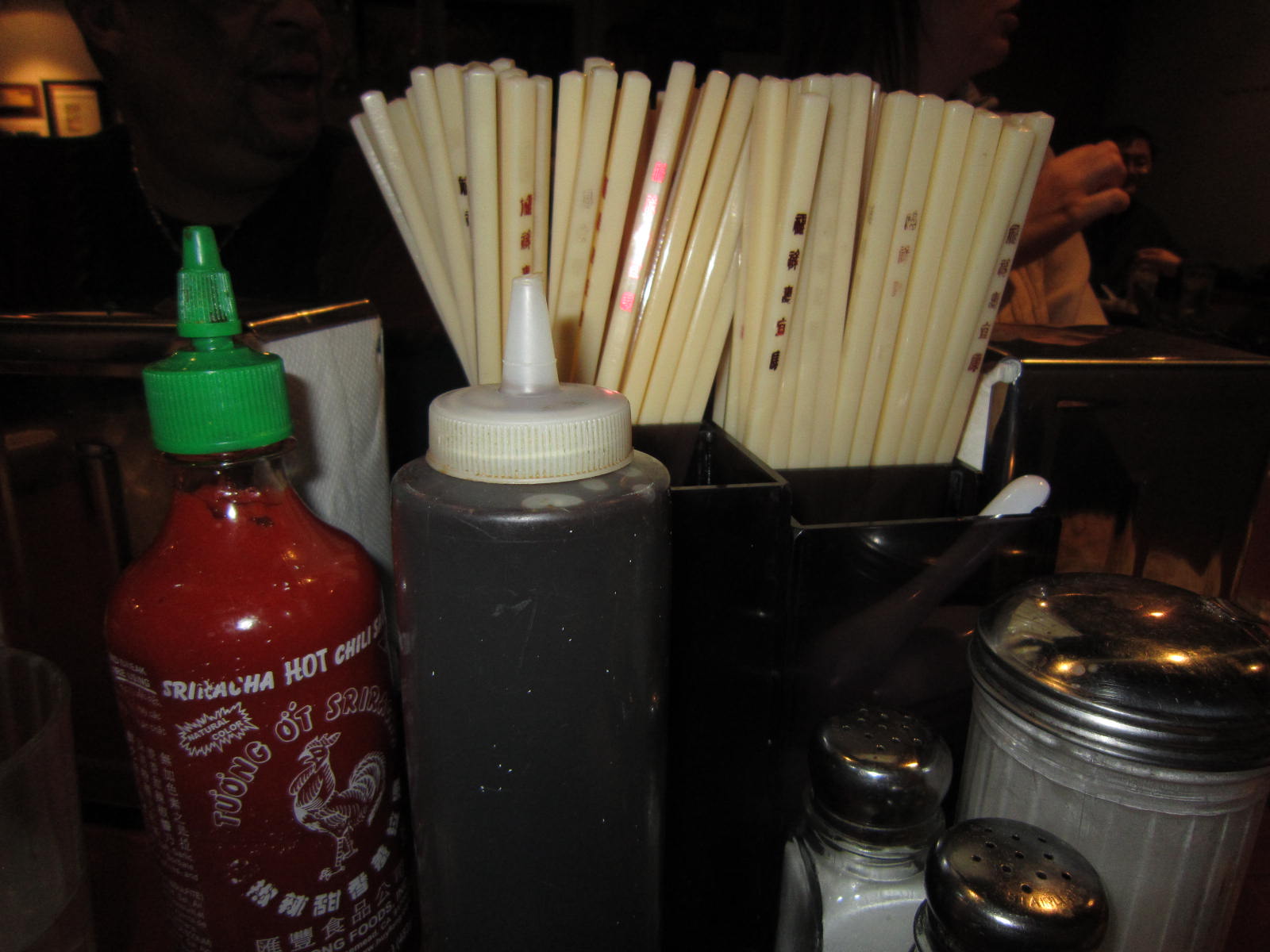 My waitress asked why I wasn’t using the chili paste/oil (I am not a fan of spicy), but she showed me how to doctor it up by mixing it with the hoisin sauce and chili sauce in the bottles on the table. About one third of each sauce mixed together in the bowl to taste, and it is not at all spicy and just delicious! I greedily added it to my pho. I ordered a small pho and two egg rolls, and it was the perfect meal.