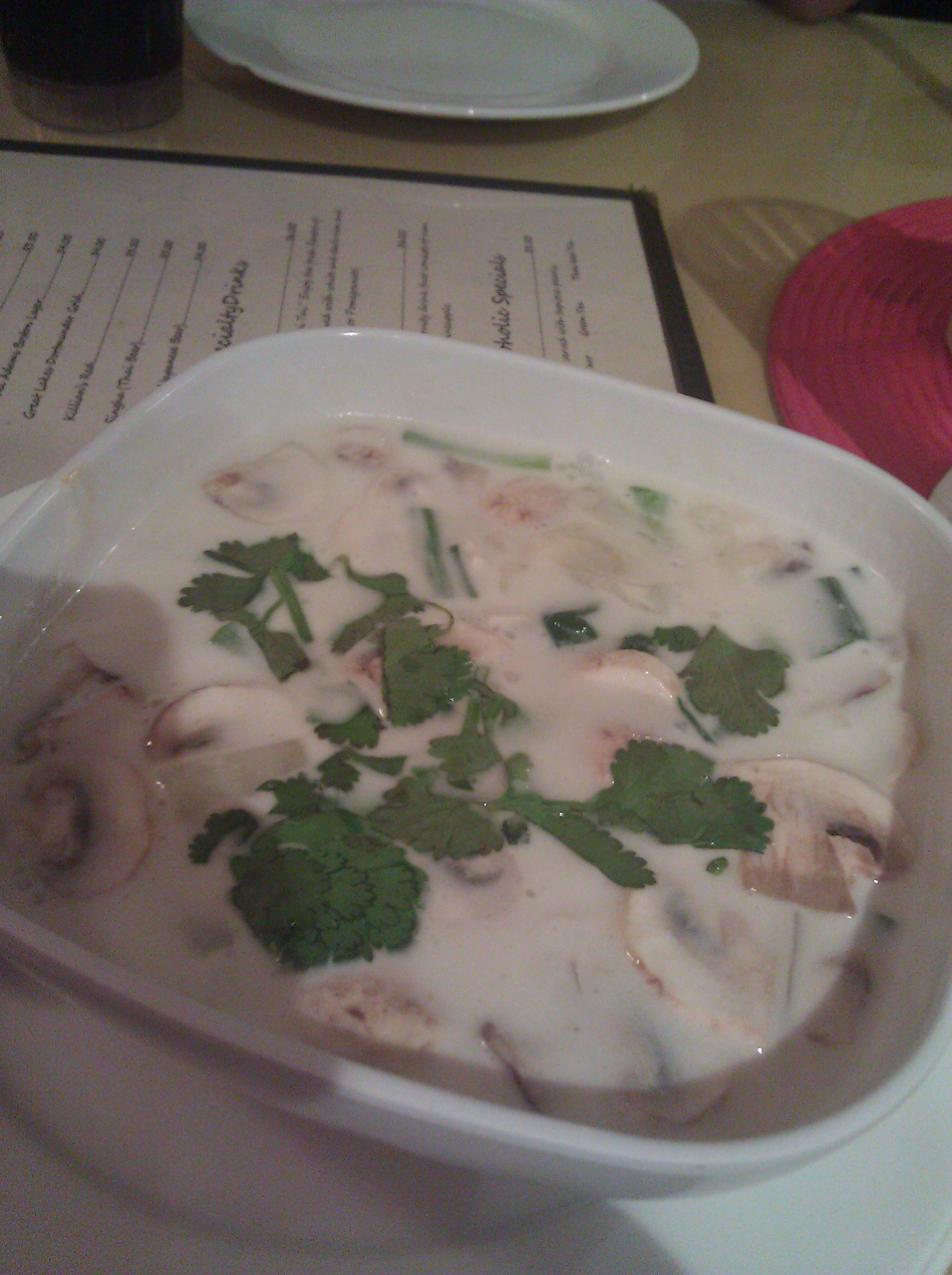 I can also attest to the Tom Kha soup. I am a huge fan of this coconut milk-based soup featuring onions, green onions, mushrooms, tomatoes and fresh Thai herbs.