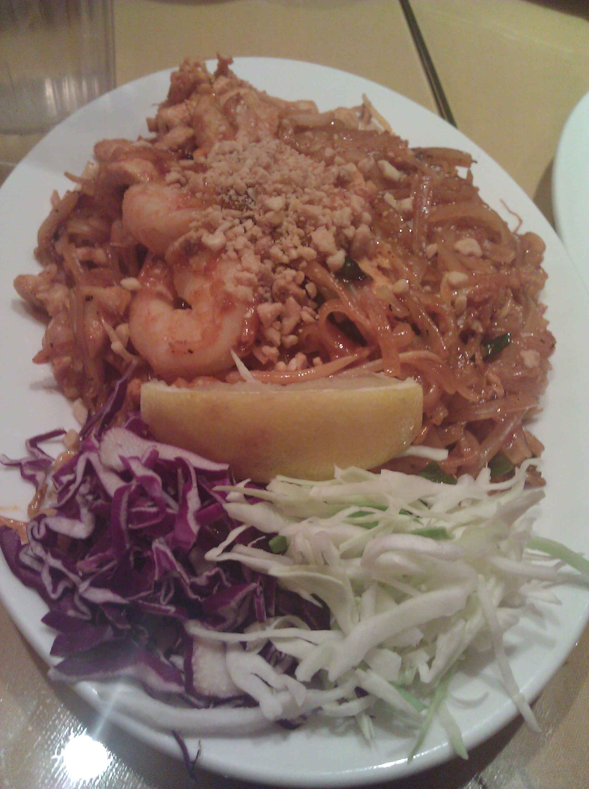 Everyone who tried this dish absolutely loved it. It was perfectly prepared and just a huge knock-out. The Pla Rad Prik (or spicy crispy fish) is a Chef’s Special dish. It features either whole red snapper or halibut fillets, deep fried to a golden brown and topped with your choice of sauce, tamarind or garlic. The fish was indeed spicy and crispy when I ordered it. I had tried it at Siam Cafe and wanted to compare. This one held up to the Siam Cafe’s, and in my opinion it exceeded it.