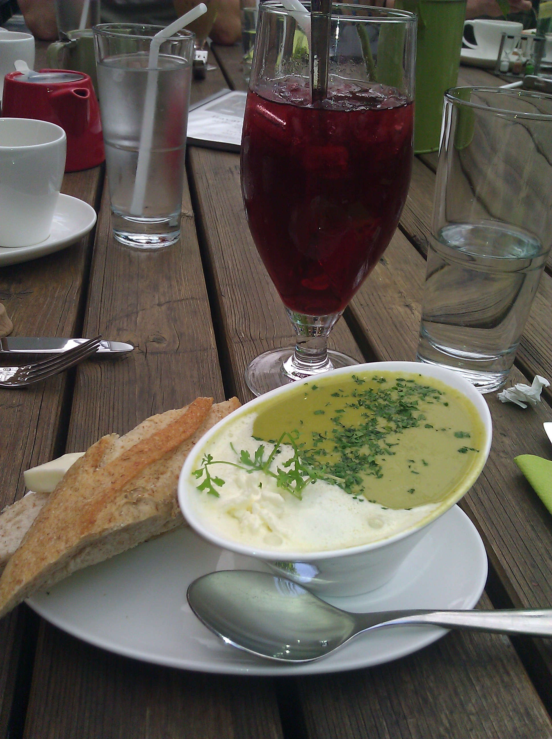 The entrees tend to change with the season. Although they cater to herbivores, carnivores won’t be disappointed either. The Weisswurst and chicken schnitzel seem to be staples on the menu. I’m not a fan of Weisswurst in general, but the chicken schnitzel is lovely. If you are there in the spring and see something called the Sunshine Plate (or something similar to that) with a stuffed hibiscus blossom and deviled egg you must absolutely order it. I swooned and wished there were several stuffed hibiscus blossoms on my plate. I also wish I had taken a photo, because the presentation was delightful. The last time I was here I ordered the salmon special. It was served with the ubiquitous cucumber and carrot salads as well as some ruby quinoa salad and a bed of lettuce topped with fresh asparagus and avocado. Wow, was it absolutely delicious.