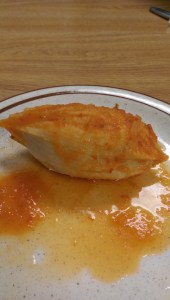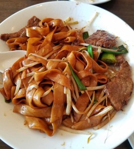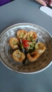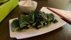 which includes pork dumplings. It is enough to share, so I shared it with my friend. I also ordered some less-than-exciting steam buns on a kebab (seriously boring – do not recommend). She ordered some pot stickers and the Orange Beef Tenderloin.