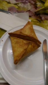 which I loved. I rarely find a chai that I enjoy. The flavors of cardamom, cinnamon, nutmeg, ginger, and clove really shine here. I ordered it with milk, but it is also available without. I find most chais watery. Not so here. It was absolutely perfect. I had also ordered two cans of soda, but since the food was not as spicy as I expected I ended up taking the second can home with me. They had a container of what looked like mango juice in the dining area for people to drink, but it was almost gone by the time we were there.