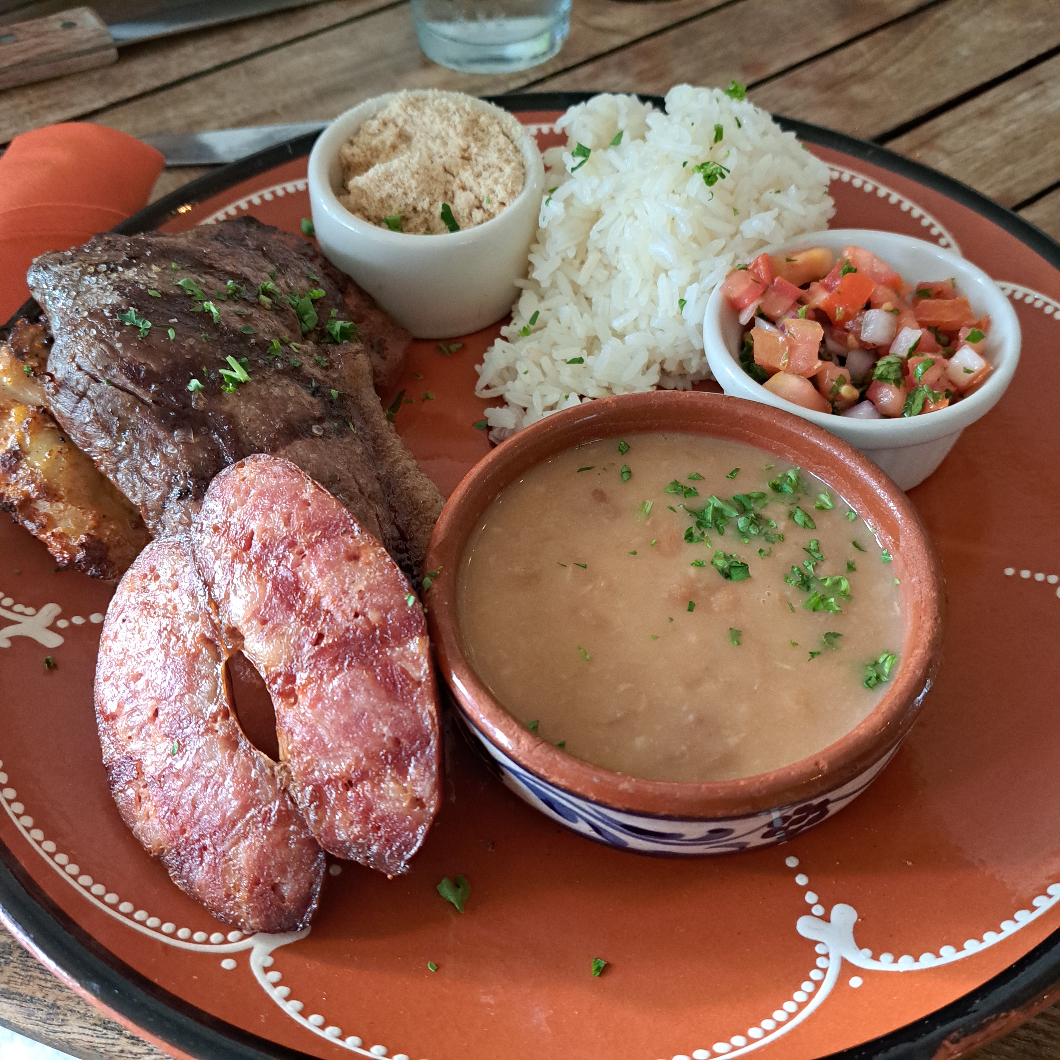 My vegetarian friend ordered the Prato Misto, a savory vegetarian dish of pinto beans, Brazilian rice, red onion rings, seasonable vegetables, farofa and fried spinach. It is dairy-free, vegetarian and can be vegan. She loved her meal except for the strange flash-fried spinach, which she found a bit off-putting.