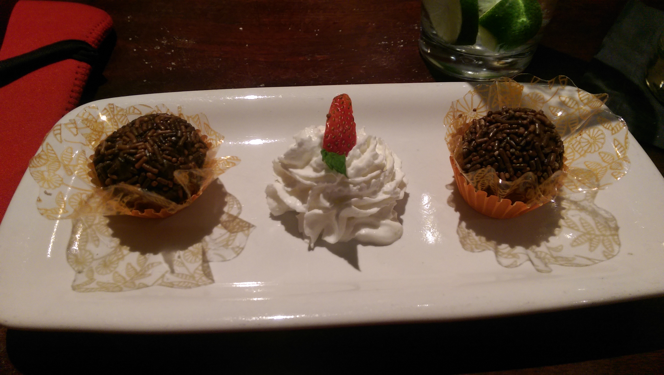 Left: Brigadeiros (Brazilian Chocolate Bonbons, Right: passion fruit mousse