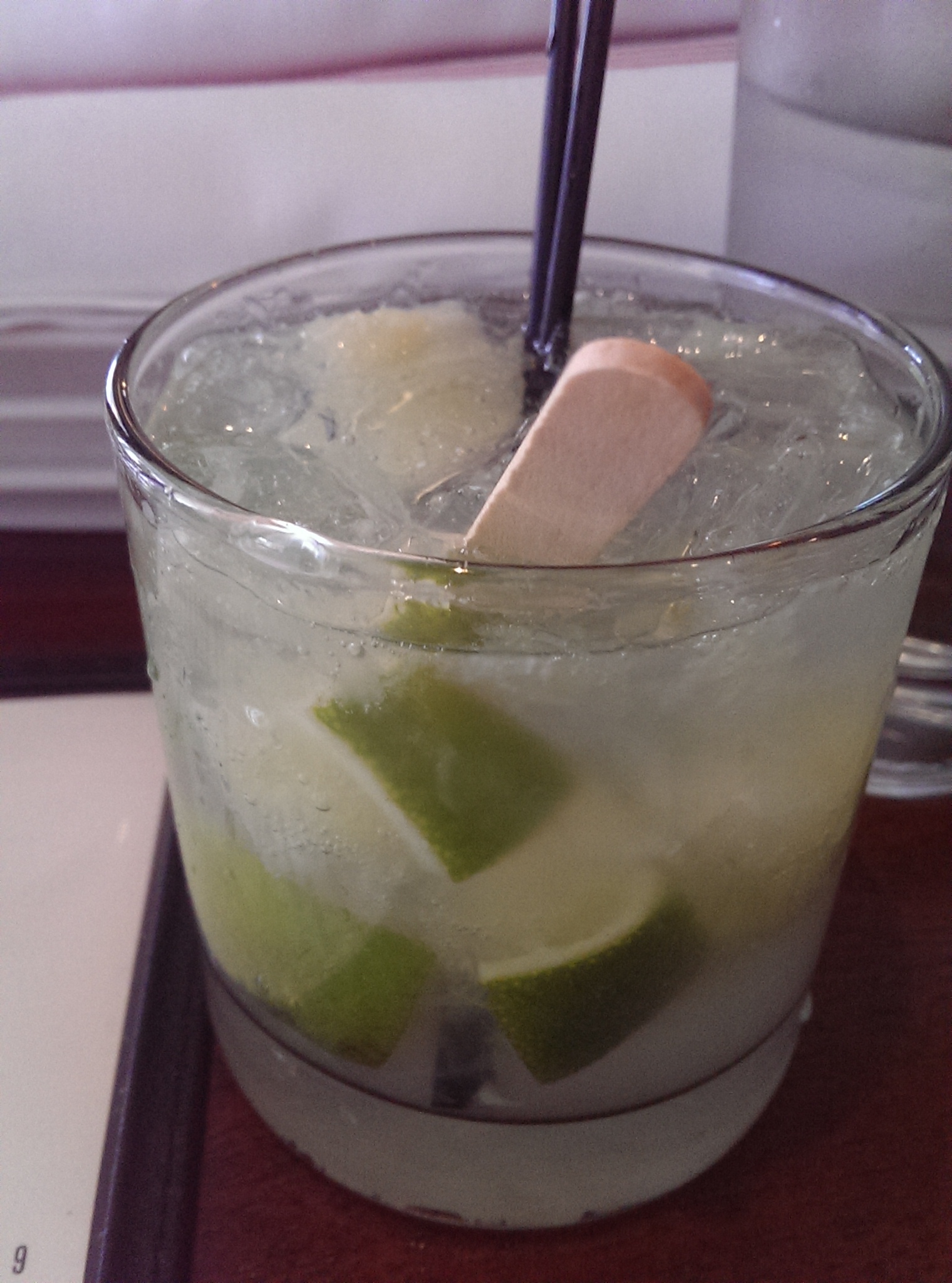 When in Brazil order a caipirinha. Caipirinha is Brazil’s national cocktail, made with cachaça, sugar and lime. Cachaça, also known as pinga, caninha, or any one of a multitude of traditional names, is Brazil’s most common distilled alcoholic beverage. It is one of my favorite alcoholic beverages, and it is executed here perfectly.