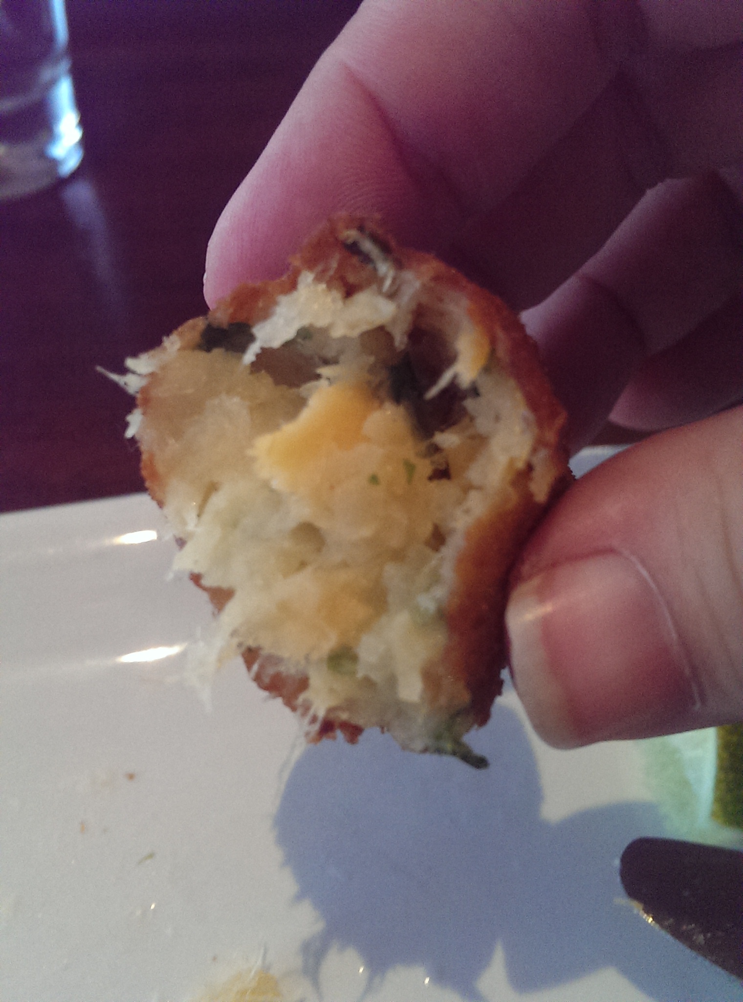 I ordered the Bolinho de Bacalhau (cod fish croquettes) with the table. They were perfectly fried, not too greasy, and the filling with light and fluffy. I loved that they served lime wedges with it. The lime was a very nice complement that brightened the croquette. I very much enjoyed this appetizer and can recommend it. My vegetarian dining companion also ordered some fried yucca without the linguica sausage. It too was really delicious, very creamy and flavorful. The photo isn’t very appealing so I’m not posting it, but the taste was great.