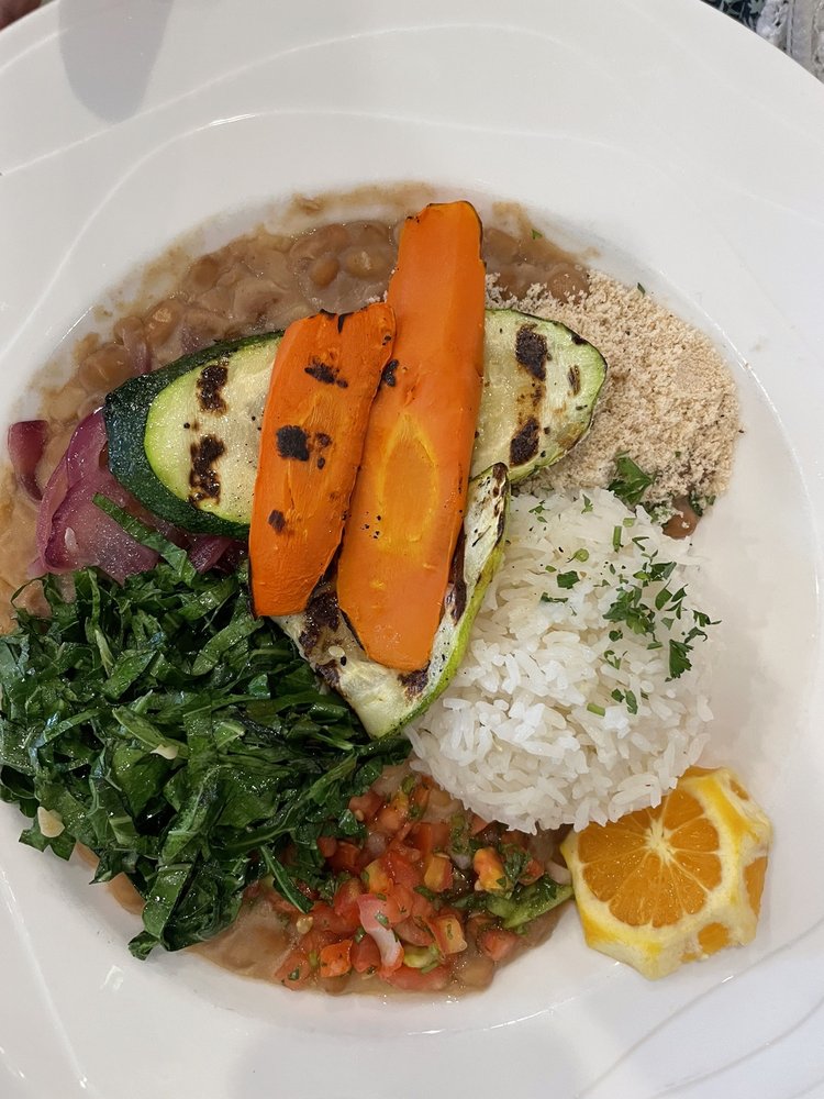 My vegetarian friend ordered the Prato Misto, a savory vegetarian dish of pinto beans, Brazilian rice, red onion rings, seasonable vegetables, farofa and fried spinach. It is dairy-free, vegetarian and can be vegan. She loved her meal except for the strange flash-fried spinach, which she found a bit off-putting.