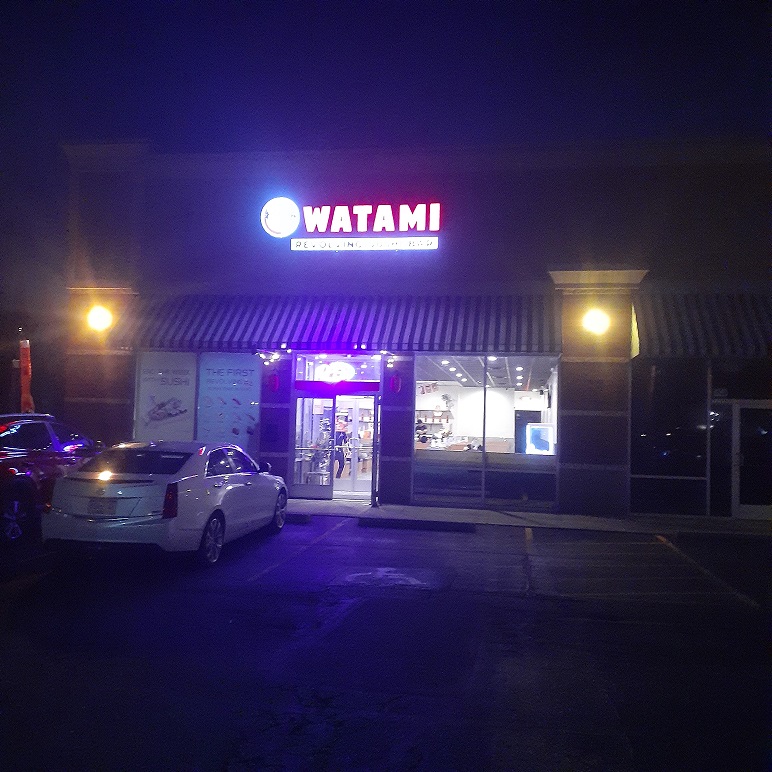 Watami Revolving Sushi Bar is the only conveyor belt sushi restaurant in Ohio as of right now. It is located on Broadview Road near the intersection with Pleasant Valley Road in Parma near the border with Seven Hills. It is in a small strip mall in front of the Giant Eagle and is next to a Dunkin’ Donuts. You need to enter and exit the strip mall at the gas station.