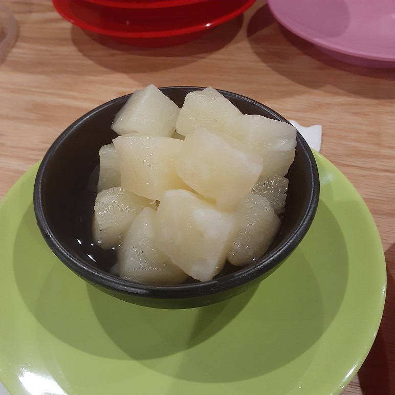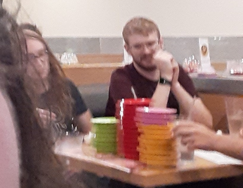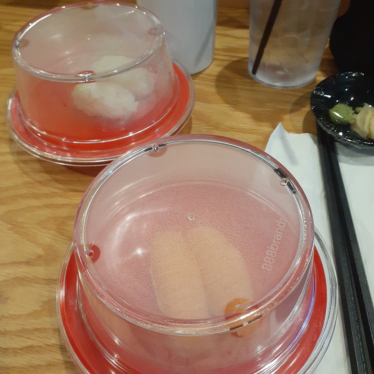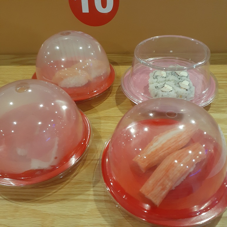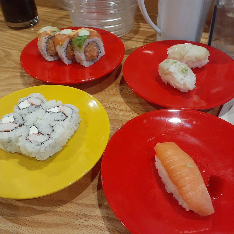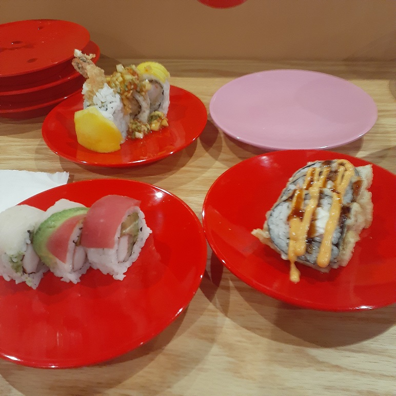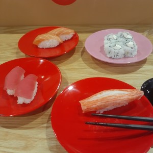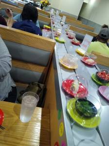 The second time I went I met several friends. Instead of sitting in a booth and having one or two people grab items for the others, I chose to sit at the end with seats facing each other. That way everyone was able to grab what they wanted while the other people could enjoy their meal instead of stressing to quickly grab stuff off the belt.