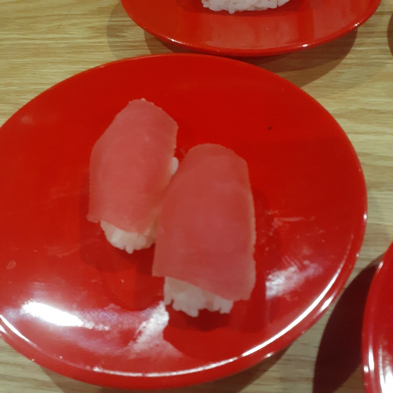 The sushi chef prepares sushi and puts the individual plates on the revolving conveyor belt that circles the dining area. The items on the conveyor are on various colored plates, so the server knows what to charge by counting the plates on your table at the end of your meal. Diners choose which plates they want as they pass by. If you want something that isn’t on the conveyor belt like rmen or udon or a beverage, you can order it from a server. If you have 15 or more plates you can go try your luck to win a capsule toy. The plates with rolls usually have 3-4 pieces (2 for nigiri), so you can try quite a few different rolls in one meal. They also have some appetizers, desserts, and fruit circling as well. Watami Revolving Sushi Bar is a healthy, fun, and delicious dining experience.