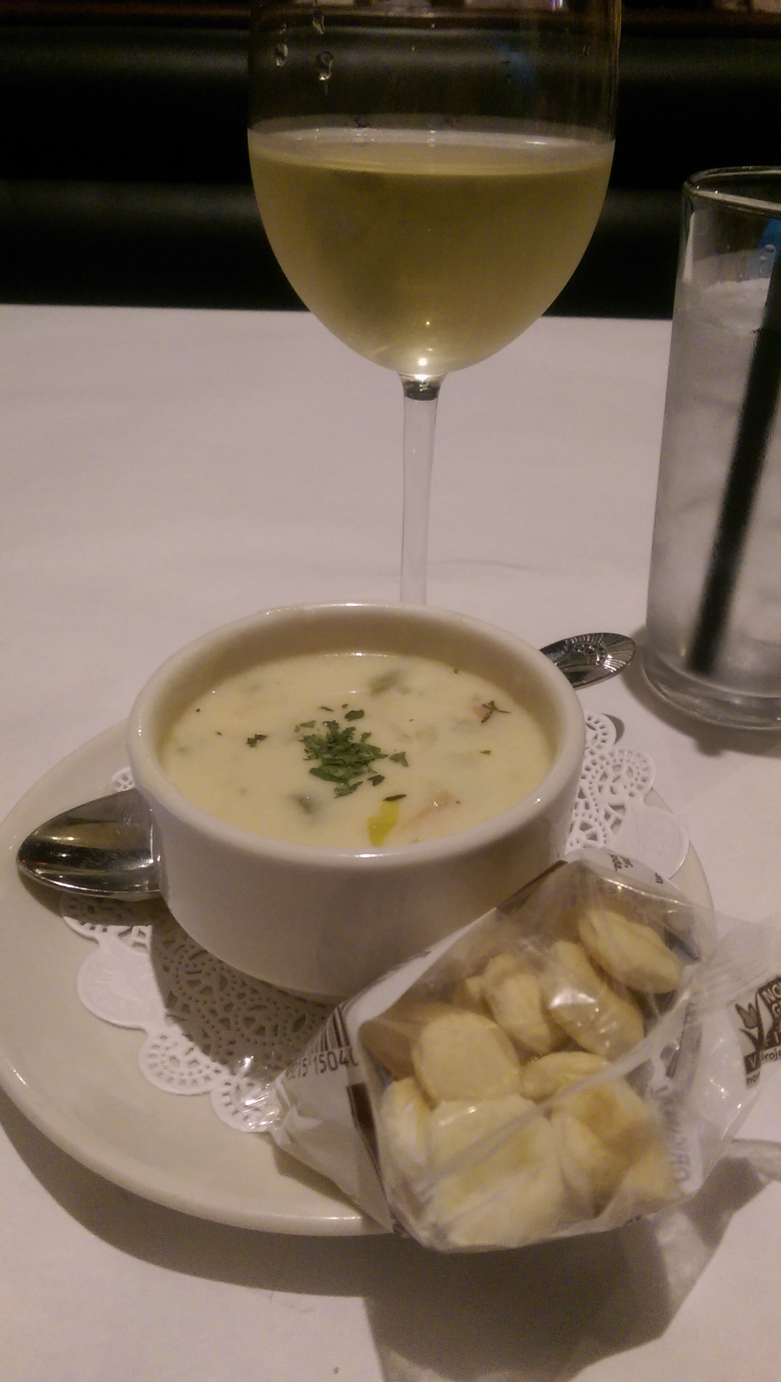 The lobster bisque was ok, but (unlike the lobster rolls) did not contain a lot of lobster. It had a nice creaminess to it. They serve Manhatten clam chowder on the regular menu, but I prefer New England chowder. The New England clam chowder accompanied the clambake. It was a decent chowder. It’s not the worst, but also not the best I’ve had. A decent chowder is still a plus in my book.