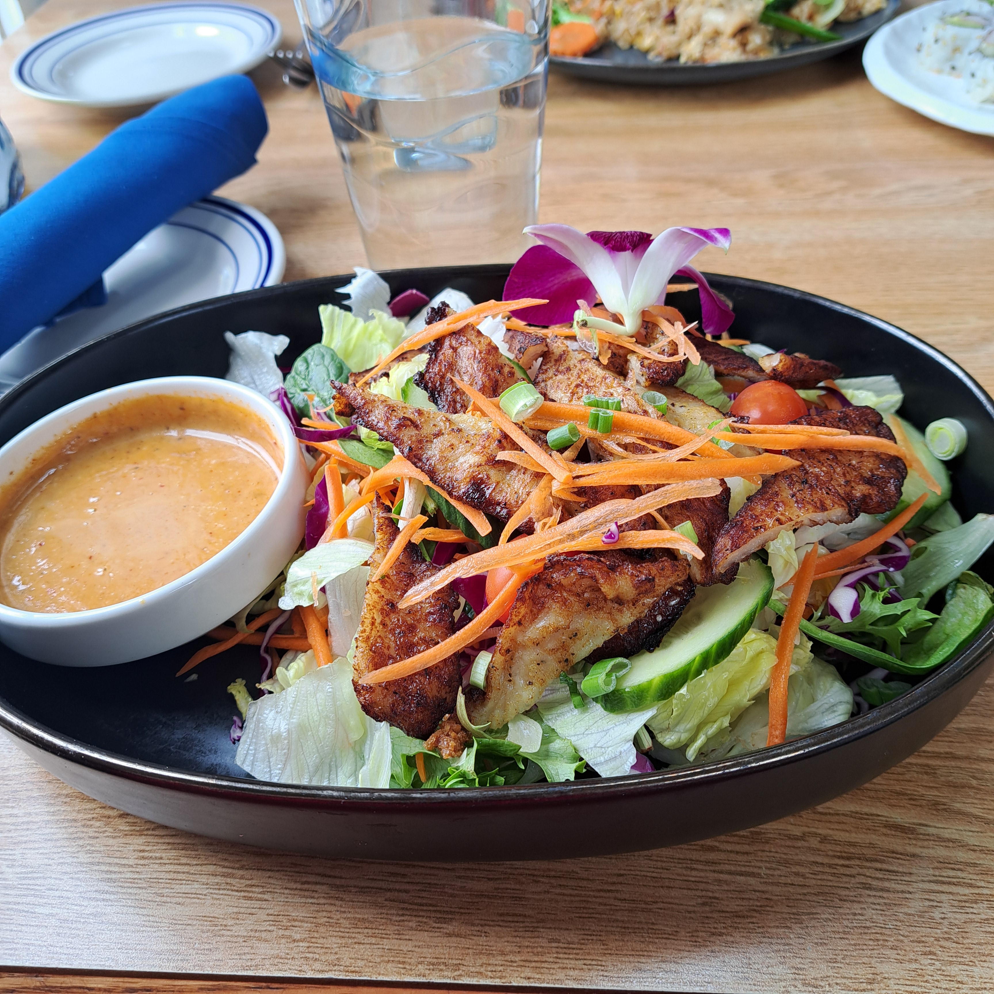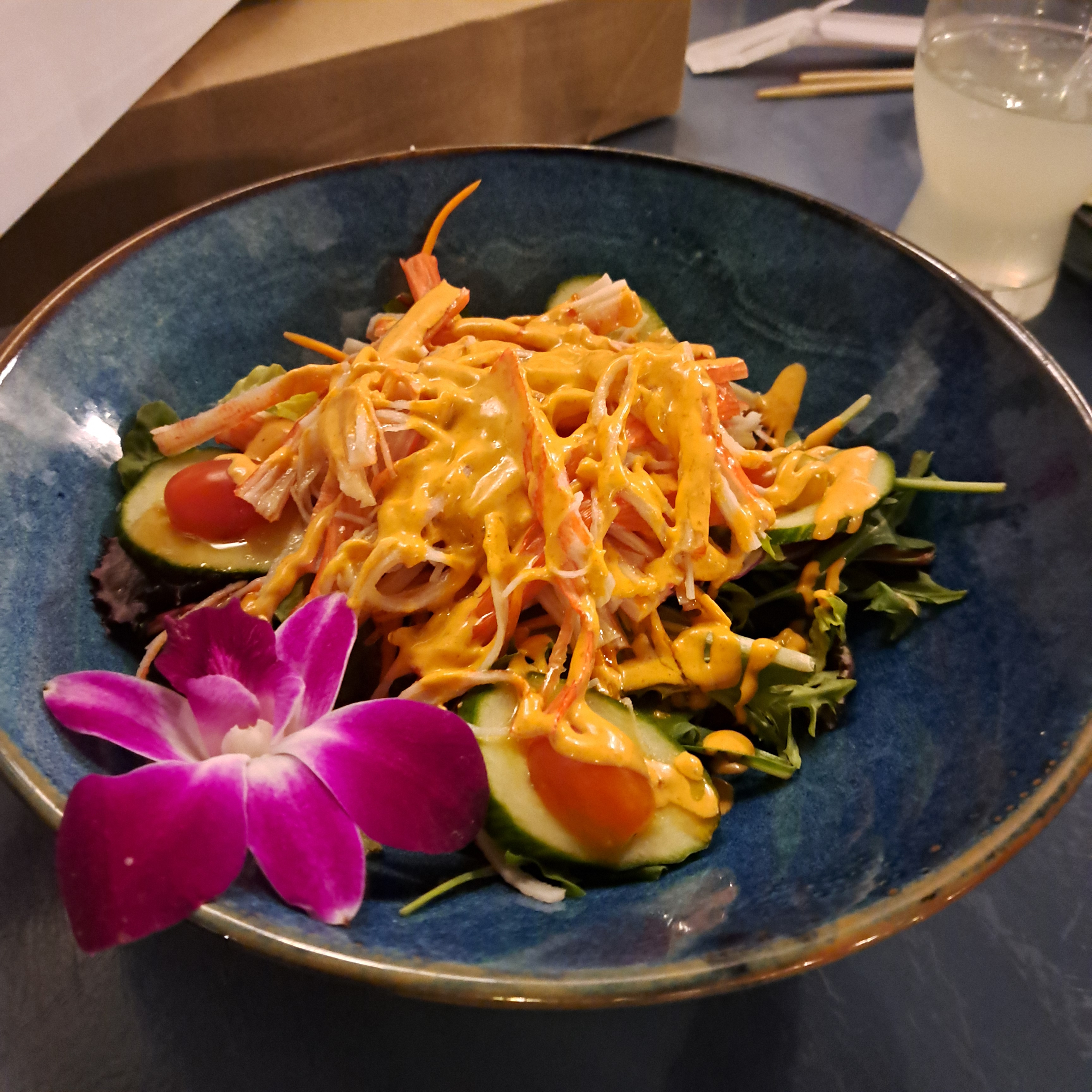 My mother usually orders the Vietnamese pork chop. She has gotten it as a salad and with a side of gluten-free fried rice. It is no longer on the menu, but they happily make it for her because they know about her dietary issues (she is dairy and gluten-free). My father loves the crab salad and particularly loves it when it is made with soft-shelled crab. It is usually made with crab meat, spicy mayo, lettuce, cucumber, scallion, sesame seeds, yum yum sauce.