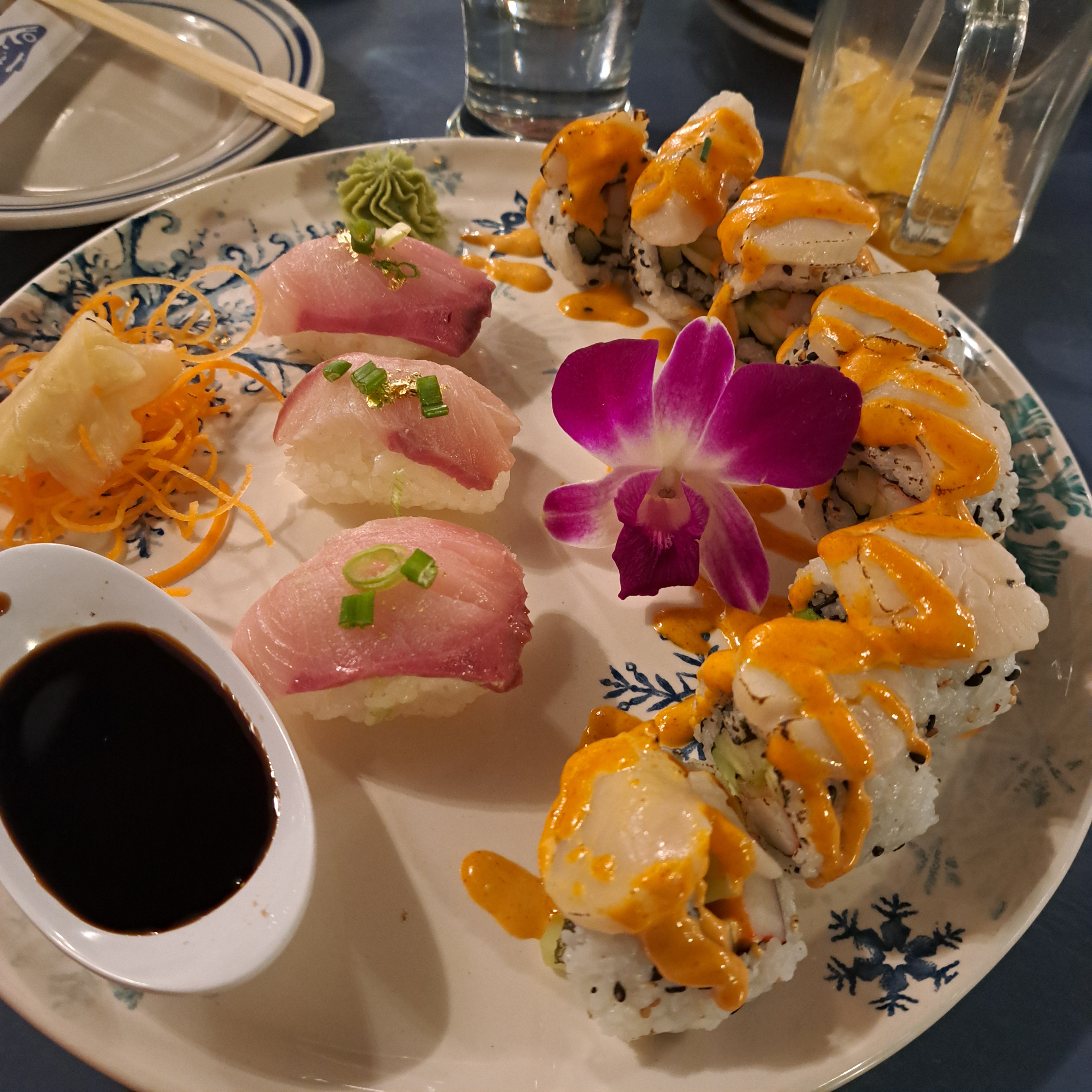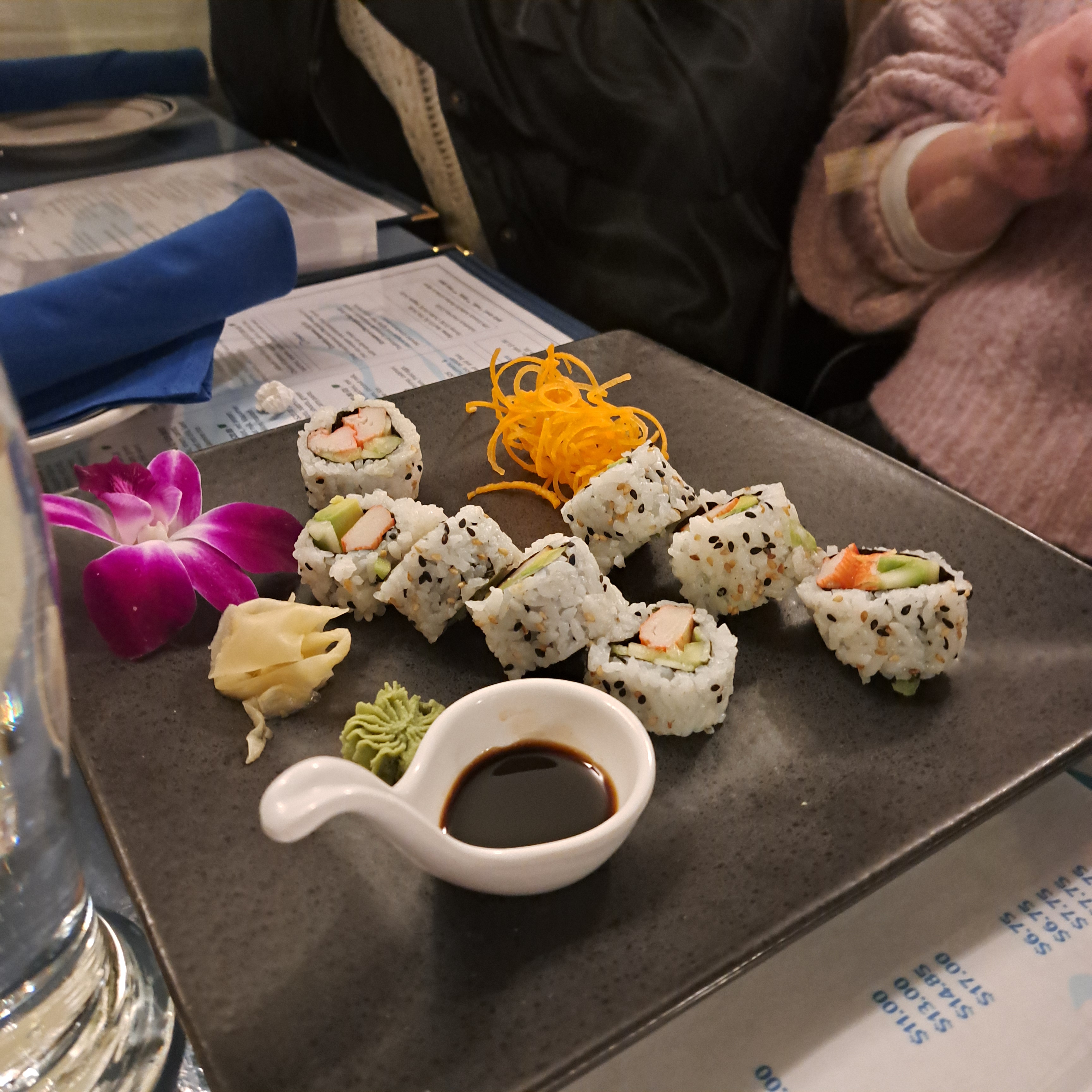 The attention to detail for their meals is meticulous. Every dish is served with a beautiful, decorative flower. The first time I ordered a sushi roll I was blown away by the hand-carved lemon. The rolls are rolled tightly, and the fish and other ingredients are very fresh.