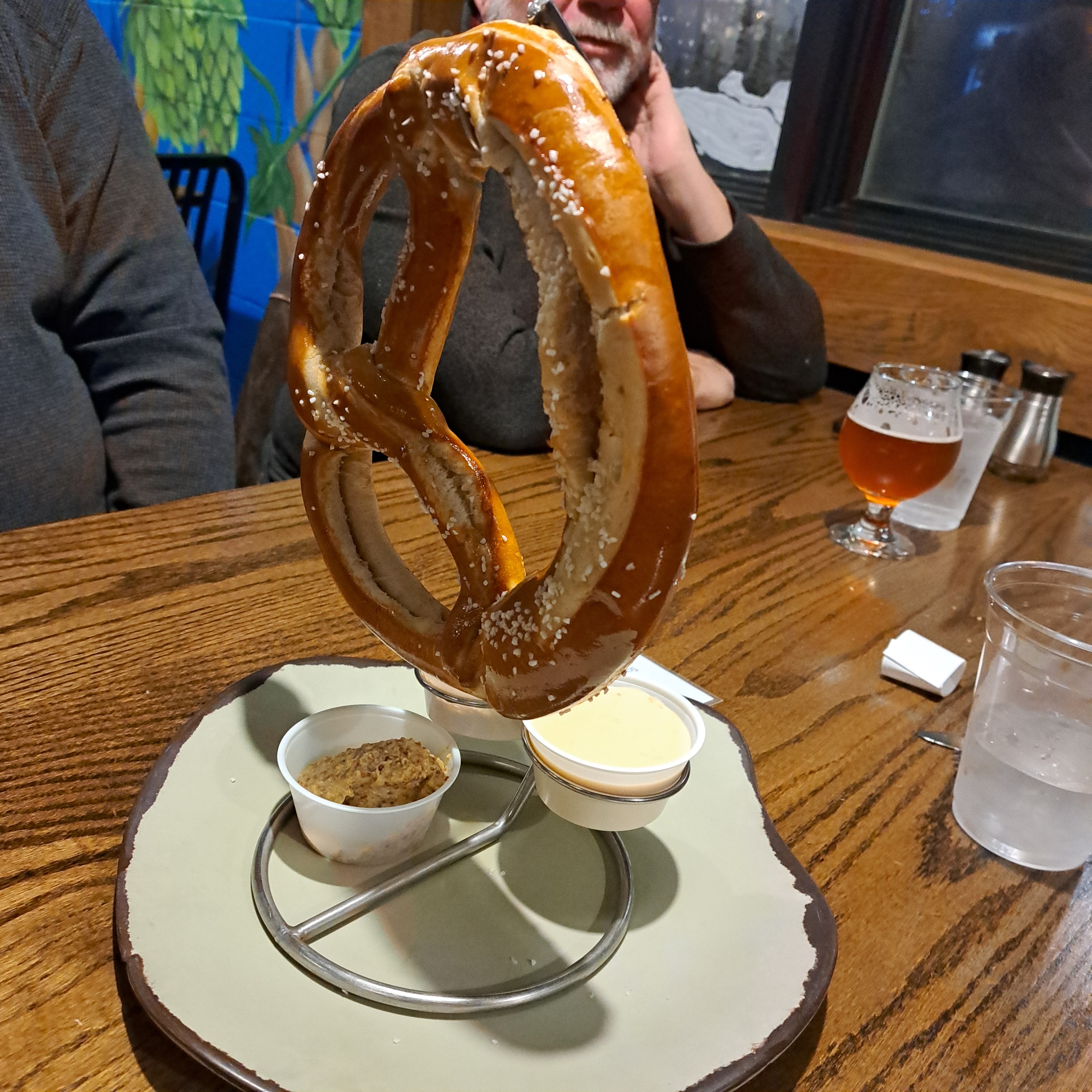 On our first visit I ordered a Giant Bavarian Pretzel for us to all share, and we enjoyed it very much. You know the German translator had to order the giant pretzel, and it did not disappoint. It was fluffy inside with a nice crust. It is served with a green chili white queso and whipped cinnamon butter. Not exactly typical German pretzel dips, but I really enjoyed the cinnamon butter.