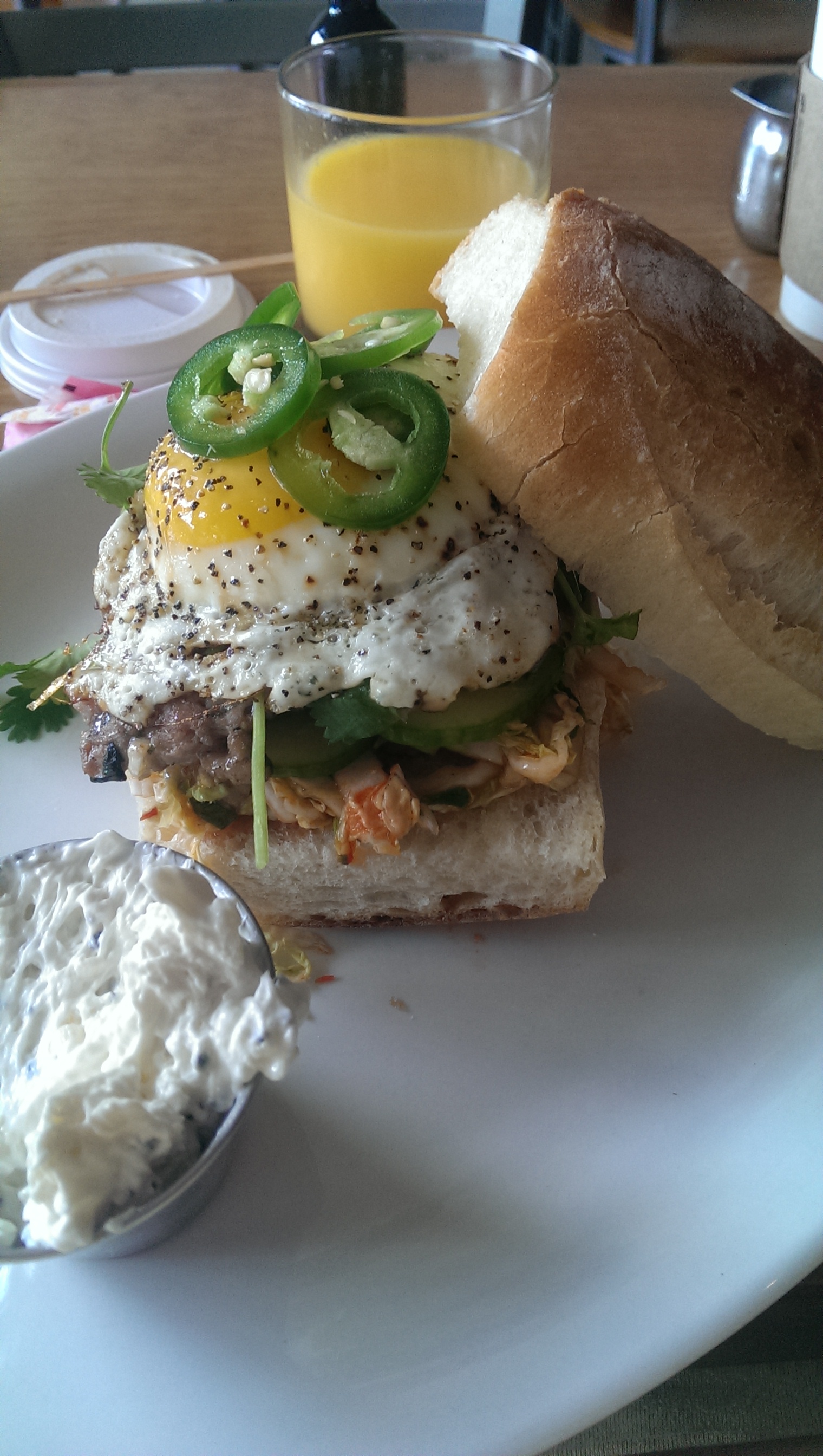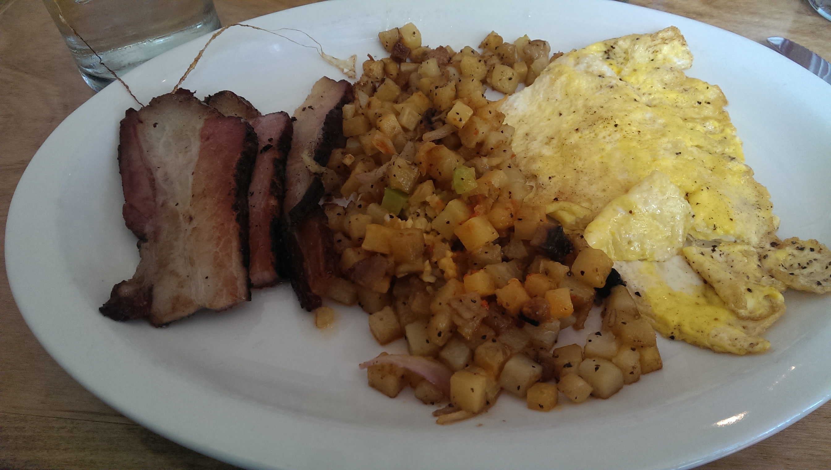 some veggies, so I ordered a side salad, which rocked my world with the addition of a warm bacon dressing. If you order nothing else here, you must try the warm bacon dressing! OMG!