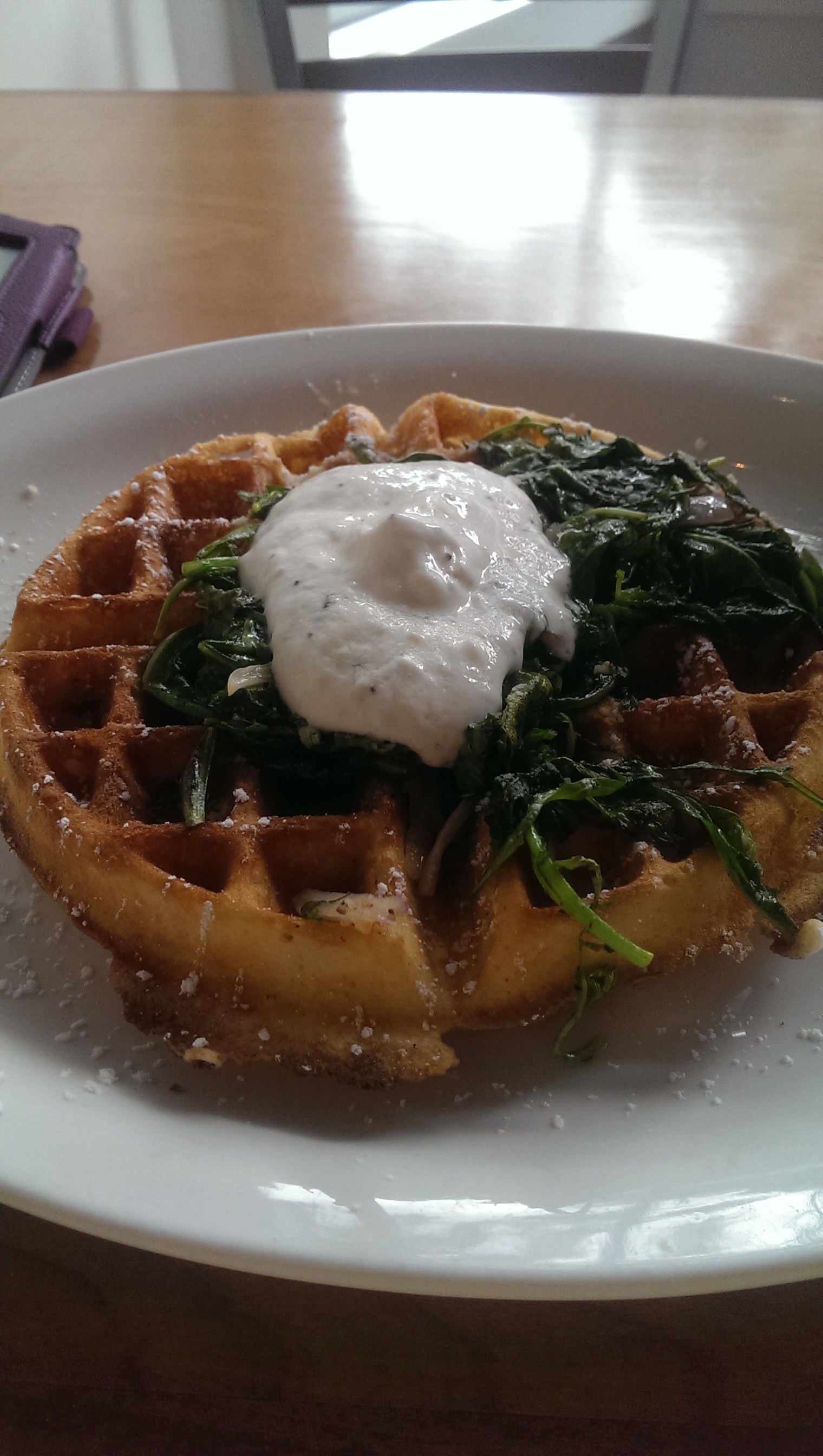 of Italian wedding soup, so my choice was easy. The Italian wedding soup which was very flavorful and an interesting twist to a traditional recipe. There was one big meatball in the middle and some fresh spinach leaves and little bits of chicken throughout the broth. It was a very good soup.