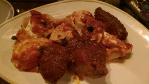 The first time I ate here the Sunday Sauce called to me, and I simply can’t break away from ordering it. Sunday Sauce is what every Italian I know makes – call it sauce or gravy, it is simmered for a long time with pork neck and/or back, sausage and meatballs or even braciole. I order it every time I go and just vary the pasta. The Sunday Sauce is a delicious tomato sauce that comes with an Italian sausage, a meatball and some pork. For $20 it is generous enough for leftovers every time.