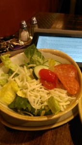 The side salad with house Italian dressing always hits the spot. It is dressed with the perfect amount of dressing – not too little, not too much – and topped with shredded cheese, cherry tomato halves, cucumber slices and a couple pepperoni. I got to have my vegetarian friends’ pepperoni last time. So if you are a vegetarian, be forewarned to order with no pepperoni.