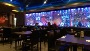 I stumbled on it when I was looking for a place close to the Parma-Snow library to grab a bite after an author book talk and signing. I love the wall of water and fake fish that divides the dining area from the bar and sushi bar. I saw a lychee martini on the menu and haven’t looked back. The lychee martini is really nice and refreshing, with a lychee garnish.