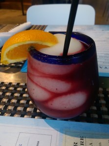 My friend who was driving and I recognized one of our friends in the public parking lot by the Capitol Theater despite her huddling under the hood of her raincoat, and we walked to Blue Habanero together. After being greeted as we walked in, the first order of business was ordering a beverage. I couldn’t decide between a margarita and a sangria, so I ordered one of their featured drinks that contains both, the Octopus. It was stunning to look at as well as delicious and deadly. I was glad I wasn’t driving, because I happily ordered a second one. I probably wouldn’t have if I had been driving, because I was already feeling the effects after one. My friends also enjoyed their margaritas—one ginger (be sure to stir it up) and the Cadillac. We then took some time to look over the menu.