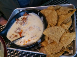 Once we realized three of our party weren’t coming we apologized and notified the staff to take one of the tables away in case they needed it and then ordered. I decided I needed to come here when I saw a photo of the queso. I ordered a sampler for the table, which features queso, guacamole and salsa. The salsa had a nice kick to it, and the queso and guac were fresh and creamy. One of our friends ordered an order of queso with chorizo, and I have to say it was my favorite thing on our table all night. I couldn’t get enough of the flavorful creaminess. I am now a fan of chorizo too, which wasn’t the case before. The queso with chorizo was like a warm hug, which was welcome that chilly, dreary evening.