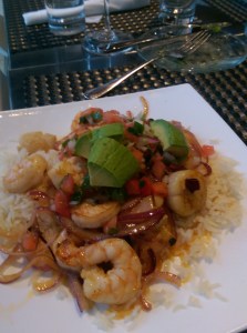 One of my friends wanted to try mine, so I got to try a bite of her dish as well. We would normally split the entrees, but neither of us wanted to part with what we ordered. She ordered the Seafood al Ajillo, which is a shrimp and scallop dish that roasts the shrimp and scallops with onion, garlic and serves it with avocado, pico de gallo and cilantro white rice. It was light with a bright flavor of roasted/grilled seafood. She liked it so much that she finished the whole thing. I could also see myself ordering it next time we go – because there will definitely be a next time.