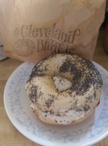 The Cleveland Bagel Company got its start vending at The Cleveland Flea and farmer’s markets. I remember trying their bagels then. They bill their bagels as a “Cleveland-style bagel”- “Not too dough-y, not too sweet, Cleveland Bagel Co. bagels are smaller, full of flavor, chewy, with a crisp exterior.” They graduated from owner Dan Herbst’s apartment to a spot in the Cleveland Culinary Launch and Kitchen then to space at Ohio City Pasta. After getting some funding from Cleveland Hustles, they opened their first brick and mortar store on Detroit Avenue. It was always a little too far for me and I am perfectly happy with Bialy’s Bagels, so I never made the trek. Well, they have now opened a shop on the East Side on Carnegie and E. 77th. They are open from 6 a.m. to 1 p.m. every day but Sunday, which means if I do get there I am usually strolling in between noon and 1. They get most of their business earlier in the morning from the Cleveland Clinic traffic. The location is going to be a hot one soon, with Fresh Fork Market’s plans to open a big facility there. Up to now the only draw there has been The Souper Market. There is a small parking lot across from E. 77th right next to the old Lancer Motel.