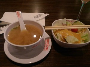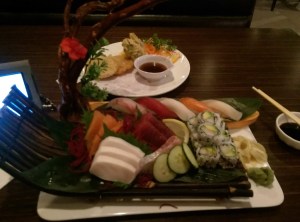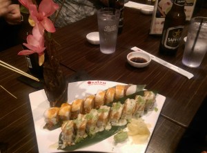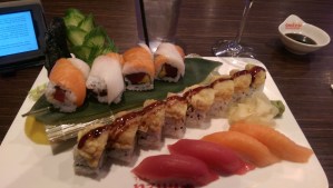I ordered two specialty rolls and a couple nigiri. The salmon and tuna nigiri were a delight. The fish was fresh, and the rice was perfect. It didn’t fall apart and had a nice flavor to it. I was not all that impressed with the “Yummy Roll.” It was supposed to have mango in it, but there wasn’t enough to notice. On the other hand, the Monkey Roll was out of this world. The Monkey Roll is topped with tempura banana. I was a little nervous ordering it, but it ended up being my favorite thing. The sweetness of the banana played off the fish and eel sauce nicely. It may not sound that great, but if you like banana trust me. You will love it. I suggest ordering it closer to the end of the meal as a dessert roll.