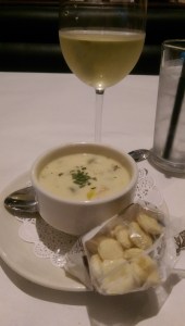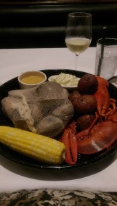 I chose The Lobster Pot in Willoughby Hills for my first clambake of the season in a restaurant. I was craving seafood and headed up there on a Friday night. It was later in the evening (just past the dinner hour rush), but I still had to wait about ten minutes for a table. I upgraded my $25 clambake to add a whole lobster for another $25. The clambake came with a cup of chowder (which was a little too heavy with the flavor of celery but still tasty), a dozen clams, red skin potatoes, an ear of corn, and cole slaw. I paired it with a nice chardonnay and enjoyed the entire meal very much. The lobster was awesome. They precracked it in several spots to make it easier to eat, but I did use the provided cracker as well on a couple of the joints. Even though the red skin potatoes were simple they were delicious and hit the spot. I only had one clam that didn’t open. The corn was perfectly cooked, and the cole slaw was creamy and only needed a dash of pepper to make it perfect. It definitely hit the spot.