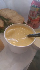 All of their soups are homemade and change every week. So far I have enjoyed their cream of potato, clam chowder and French onion. The soups taste homemade with sizable chunks of ingredients, which makes it filling. The soup comes served with a nice hunk of bread as well. The French onion soup had the croutons and cheese in separate containers to add at home/in the office.