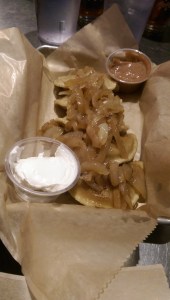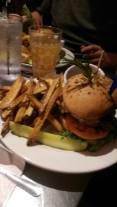 The tabletopper sign said the burger paired well with GLBC Christmas ale, but I ordered a Black & Tan because I could. Anytime Guiness is on draft I order it. Black & Tan is one of my favorite Irish beer or ders – half Guinness and half Harp or other Irish lager. It always hits the spot.