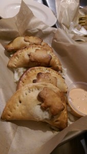I ordered the Reilly’s Corned Beef Pasties, which Reilly’s Irish Bakery makes for them. They are empanada-like meat pies (the Brits call them pasties) filled with corned beef & Swiss, sauerkraut and 1000 Island. This was the surprise hit of the night. We all loved them, and I could see myself ordering them again.